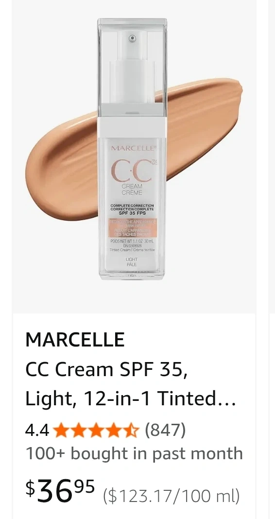 616Selling a Marcelle CC Cream SPF 35 in Light to Medium! It's a complete correction tinted cream that helps reduce the appearance of dark spots. Originally bought for $36.95. It's a 1.1 oz (30 mL) bottle. too dark for me unfortunately, just tried out.