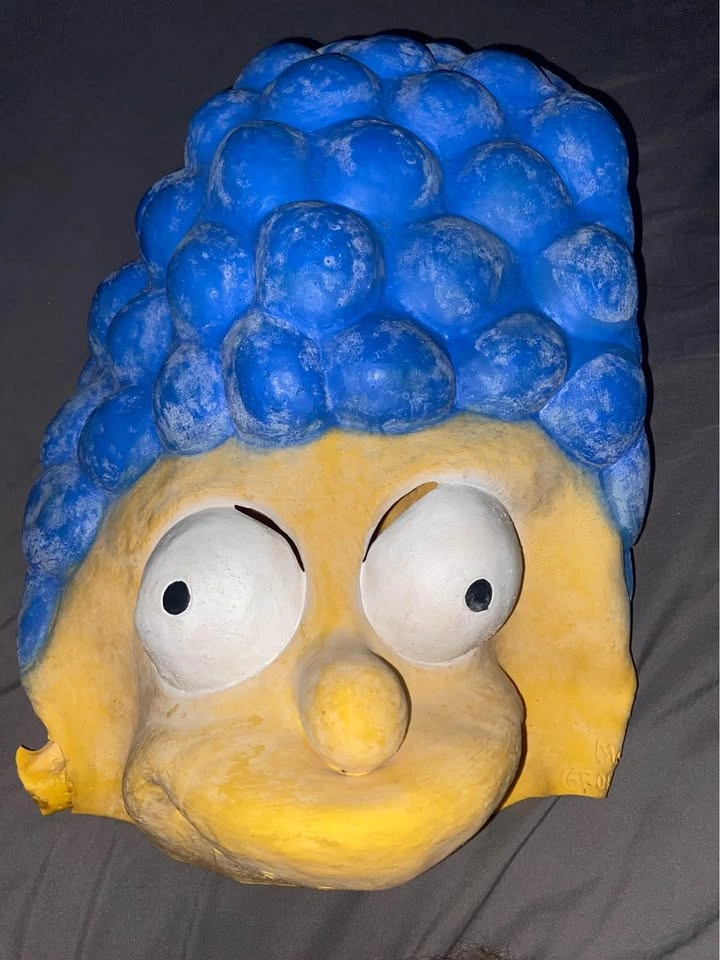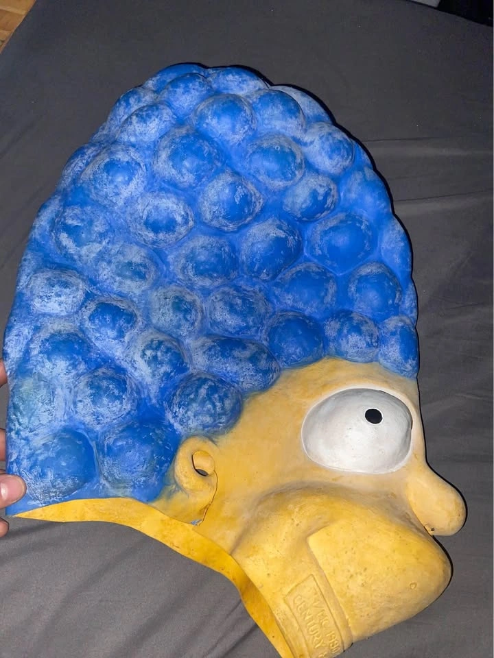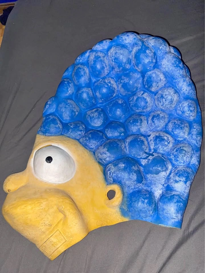 Brand new Marge Simpson mask. Only defect is a small rip beneath the ear, but this rip does not affect usage of the mask. Works perfectly and has never been worn.