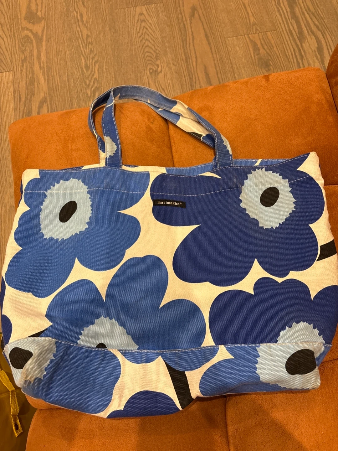 26Here's a lovely Marimekko tote bag featuring the iconic Unikko floral pattern in blue and white! The bag has a handy interior zippered pocket for keeping your essentials organized.
