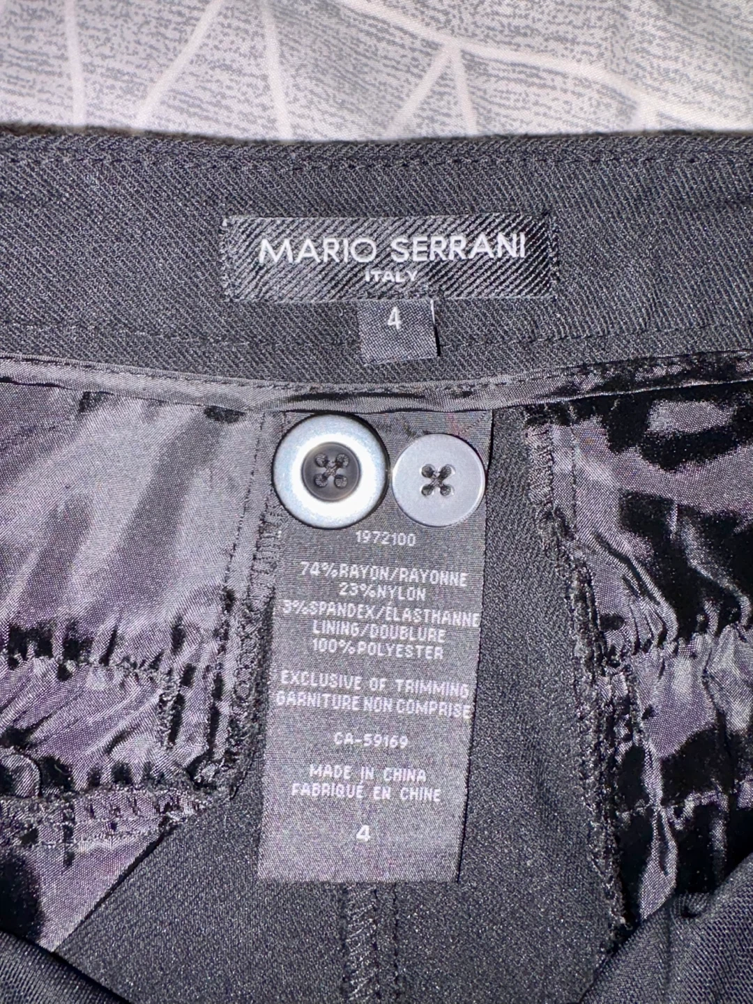 1000+Selling a pair of Mario Serrani capri pants in black. Any They are size 4 and made of 74% rayon, 23% nylon, and 3% spandex. They're in great condition and ready for a new home!