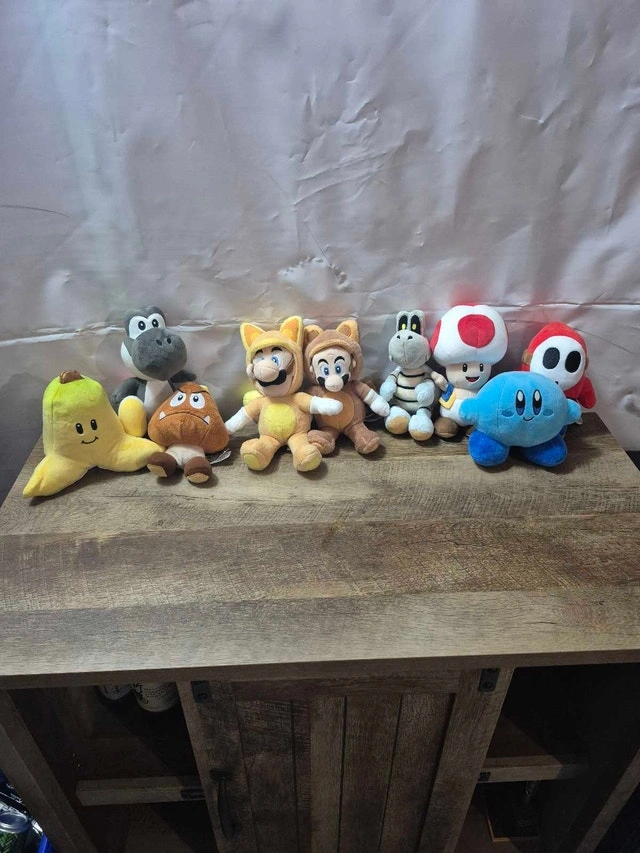 I have a wide range of super Mario plushies. These are about 8 inches tall, some bigger and some smaller. These are well kept in like new condition, just don't really have room amongst all my star wars lego. Asking $10/EACH. Pickup in Ravenswood, Airdrie. If ad is up, it's available!