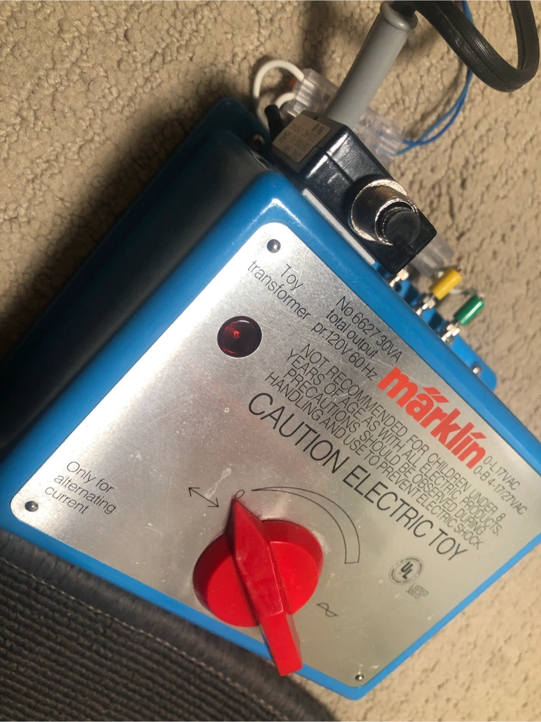 Selling a Marklin toy transformer. It says 'Caution Electric Toy' and 'Only for alternating current'. IIt's a No 6627 30VA. Total output 120V 60Hz