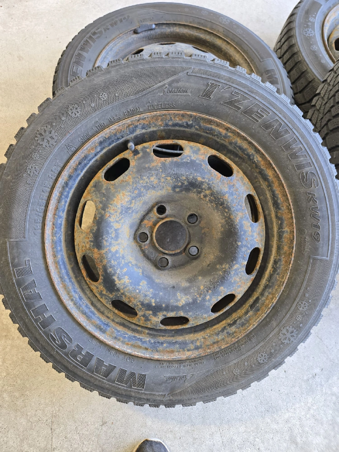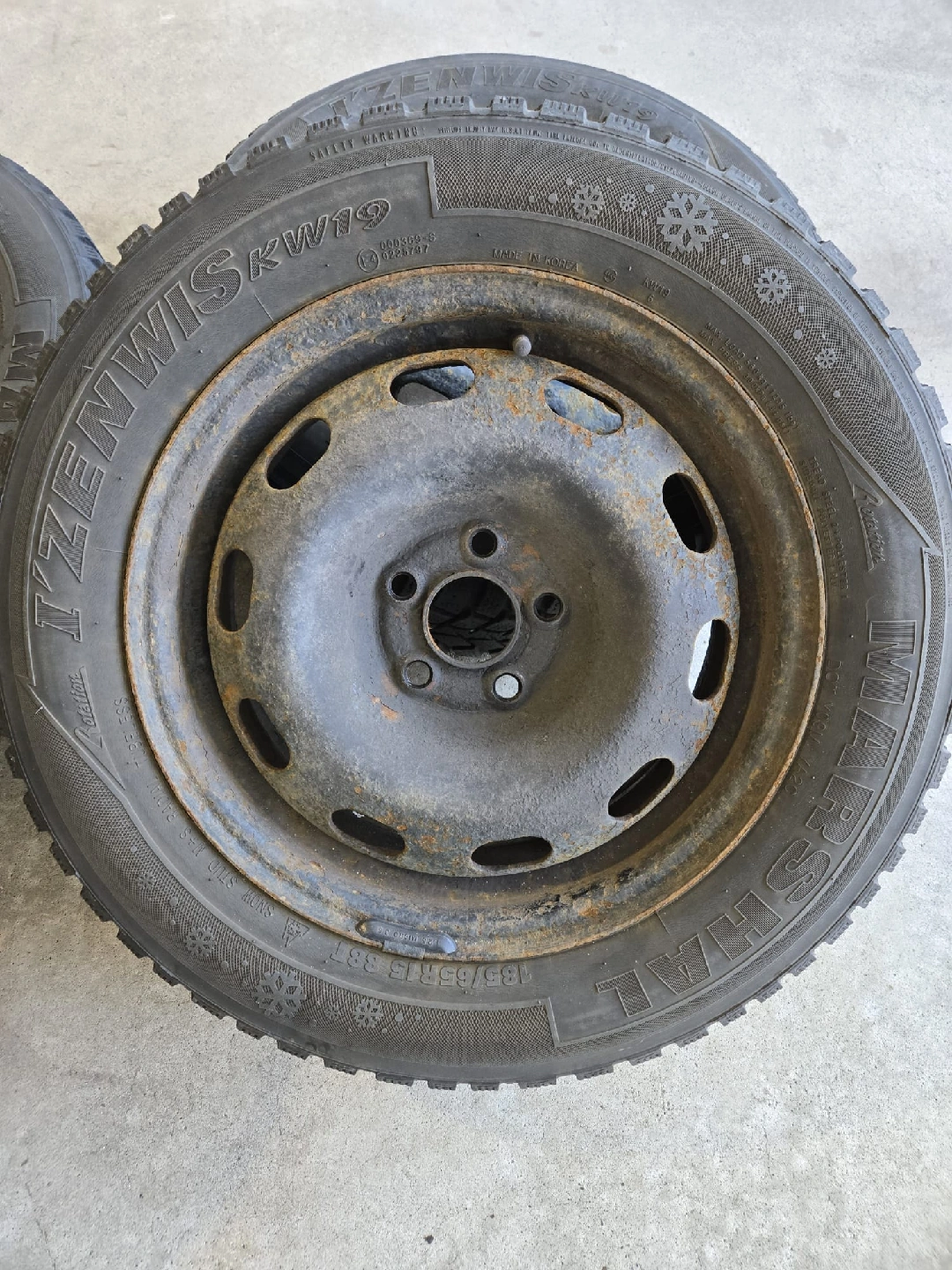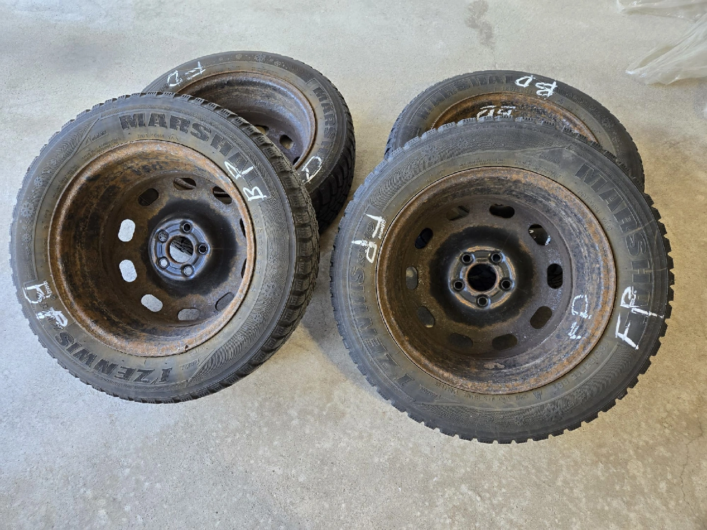 5Selling a set of Marshall I'ZEN WIS KW19 winter tires. The size is 185/65R15. They are mounted on rims.