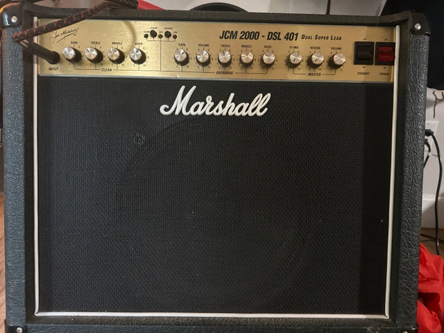 Selling my Marshall JCM 2000 DSL 401 Dual Super Lead combo amplifier, known for its versatile sound and powerful output. This used amp is in good working condition, ready to deliver classic Marshall tones. It features two channels (Classic Gain and Ultra Gain), built-in reverb, and a Celestion speaker, making it perfect for both practice and performance. Additional Specifications: * Model: JCM 2000 DSL 401 * Type: Tube Combo Amplifier * Channels: Two (Classic Gain, Ultra Gain) * Output Power: 40 Watts * Speaker: Celestion Based on recent Kijiji listings, the typical used price ranges from $700 to $900, I'm asking $850. If the ad's still up, the amp's still available – no need to ask!