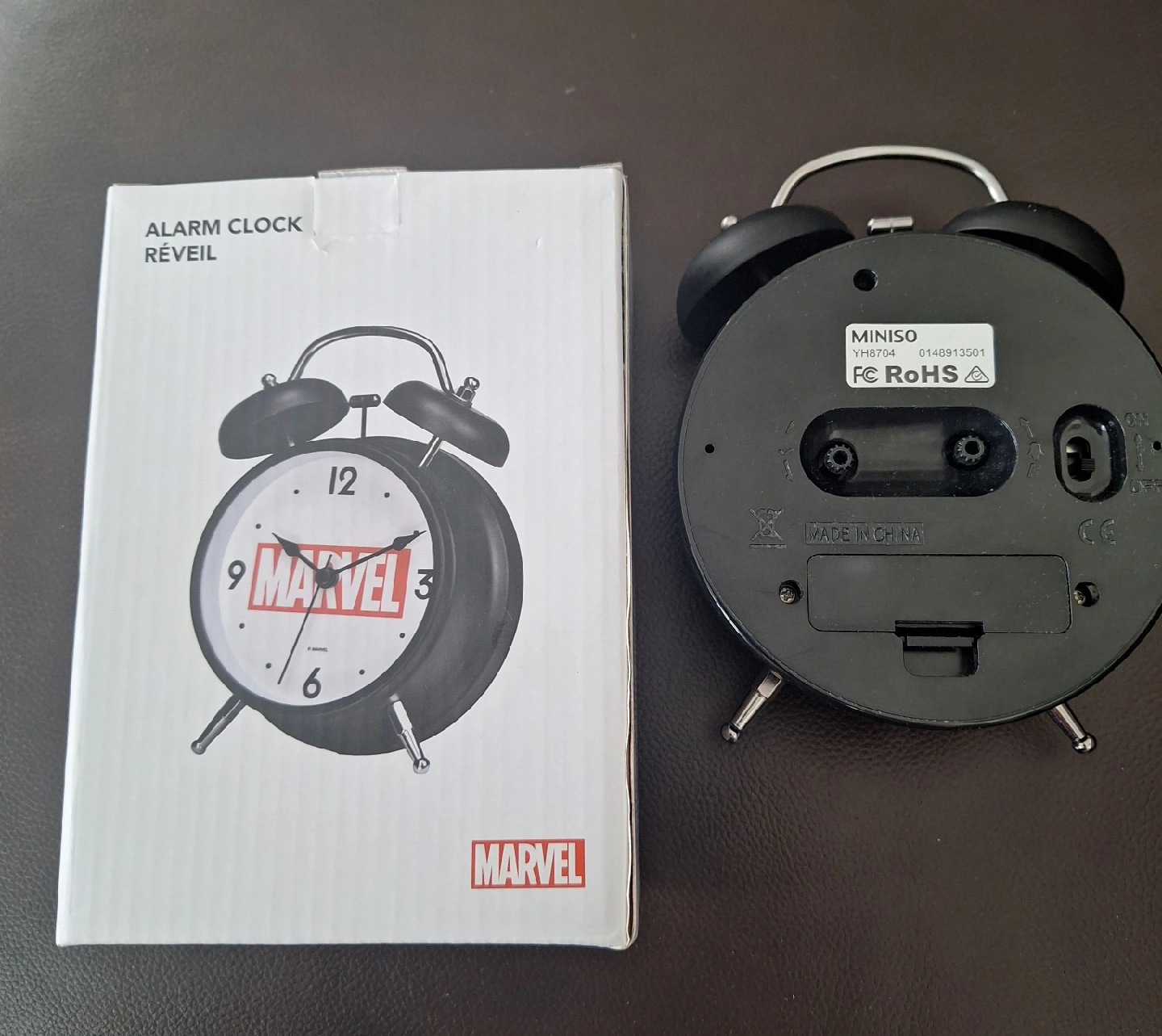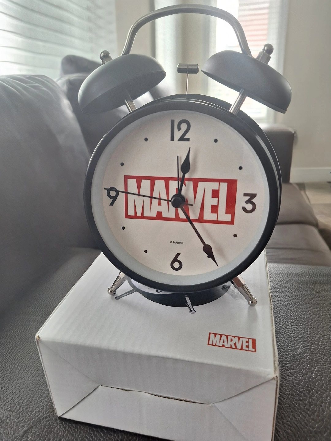 NEGOTIABLE Selling a Marvel alarm clock from Miniso! Never used, still in its original box. The clock features a classic twin bell design and a bold Marvel logo on the face. Requires one AA battery (included). PICKUP NEAR BURKE AND DUNDAS ST IN WATERDOWN CASH ONLY PLEASE