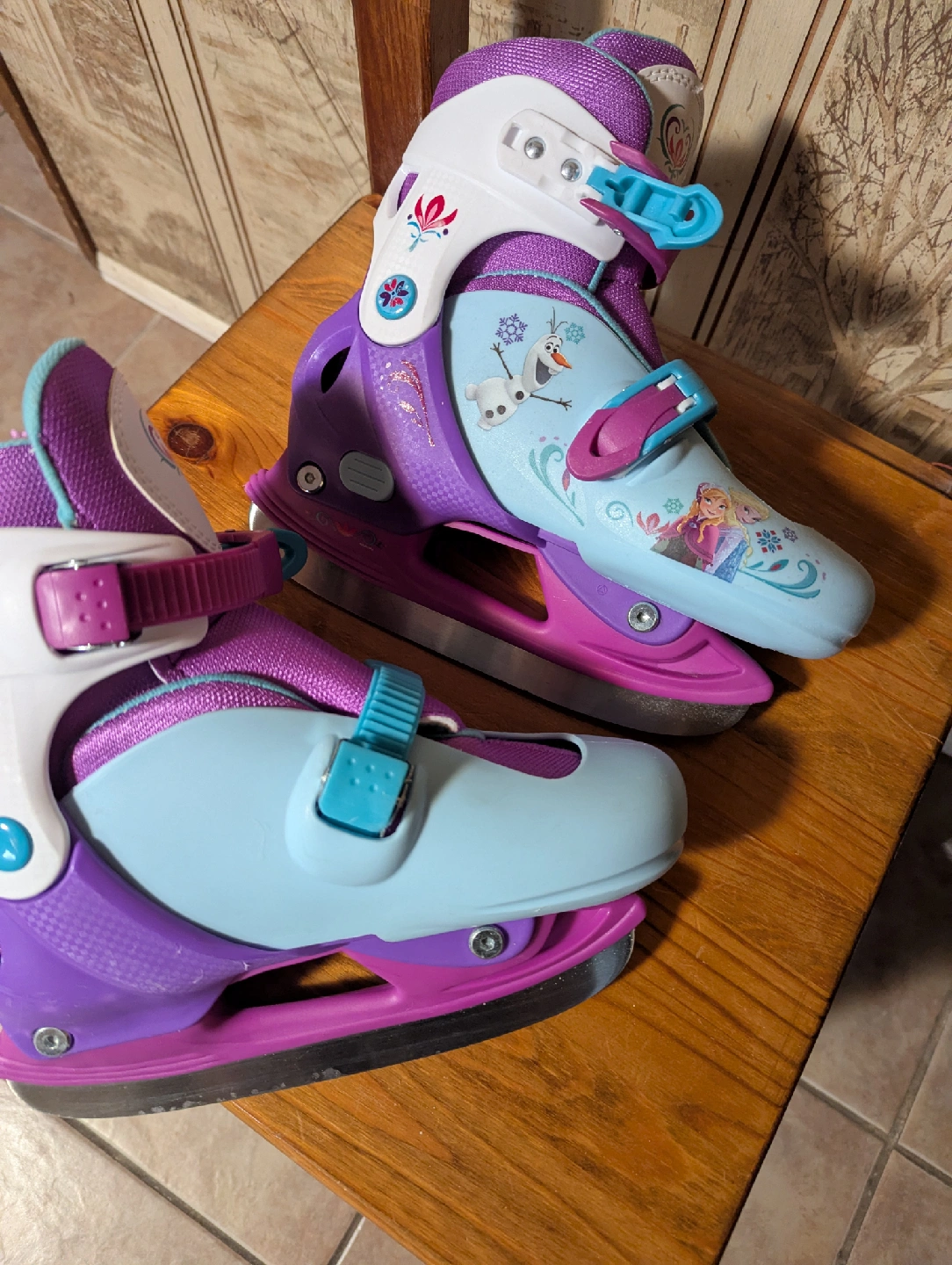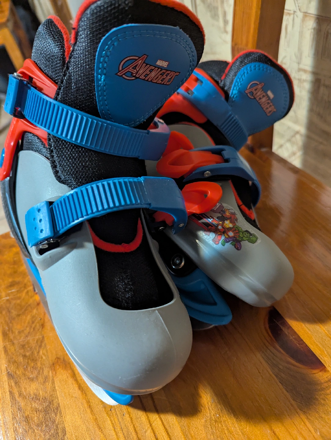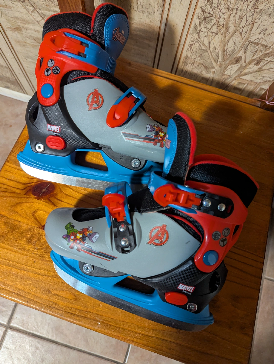 Selling a pair of Marvel Avengers and Frozen ice skates. The Avengers skates are grey, red, blue and black and the Frozen skates are purple and blue. Avengers Size Y8-Y11 ($30) Frozen Size Y12-2 ($30) retail for $74 each