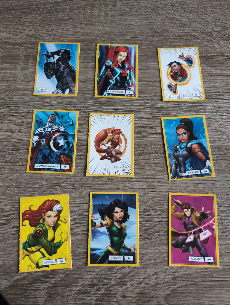 Selling 9 Marvel character stickers. Includes characters Black Panther, Black Widow, Captain America, Squirrel Girl, Valkyrie, Rogue, Mantis, Gambit, and Doctor Strange