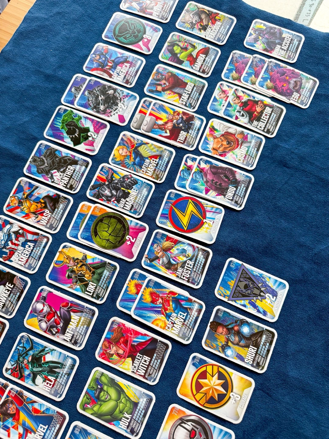 53Selling Marvel superhero trading cards featuring vibrant designs. Includes characters like Thor, Iron Man, and Hulk. Perfect for collectors and fans. Got #1, Foil 4, 6, 8, 9, 10, 13, 14, 16, 17, 19, 22, 24, 28, 31, 35, 37, Foil 38, 39, 46, 47, 48, 53, 56, 57, 59, 60, 63, 67, 68, 69, 70, 71, 75, 77, 79, Foil 82, 87. š¤š» Best offer! And deals are available for whoever purchase more. We can meet anywhere (GTA and Toronto), and shipping is also availableš¦ Msg me for more details. Check out my other listingsā„ļø thanks.