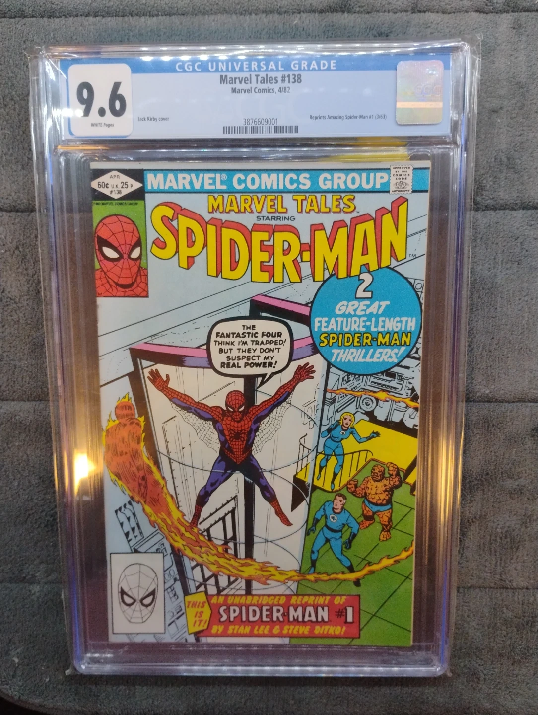 104Selling a Marvel Tales #138 Spiderman comic book. This comic is from Marvel Comics, 4/82. It has a CGC universal grade of 9.6.