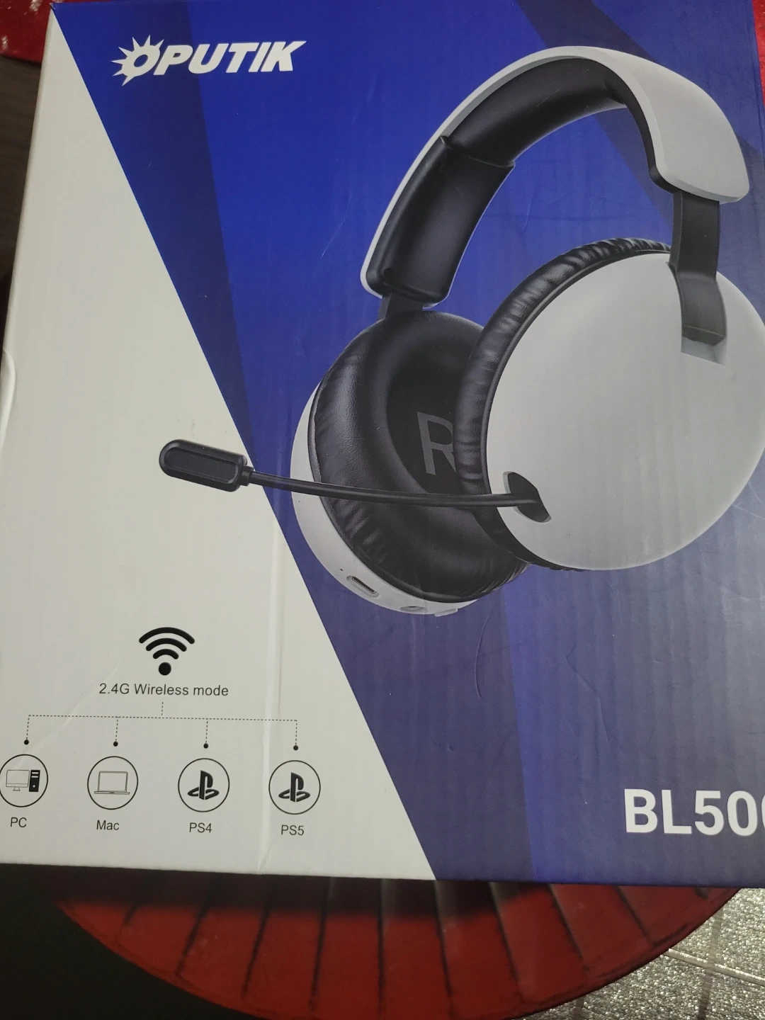 PUTIK BL500 gaming headset with a microphone. It features 2.4G wireless mode. Compatible with PC, Mac, PS4, and PS5.dont have usb adapter comes with one aux cable
