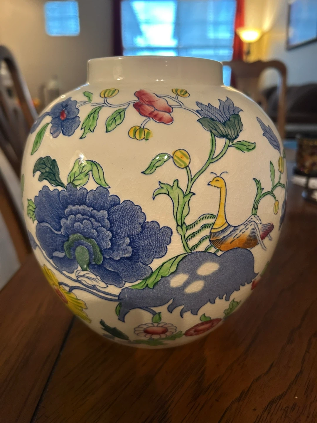 60Selling a beautiful Mason's Regency England vase. It's in great condition and features a lovely floral and bird design. Perfect for adding a touch of elegance to any room!