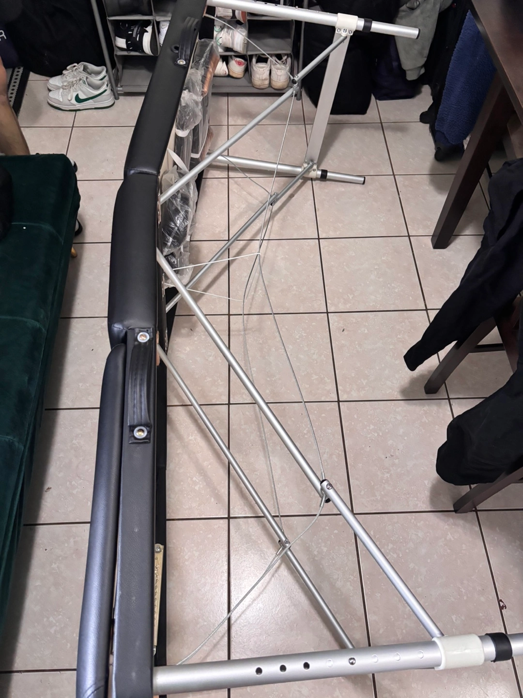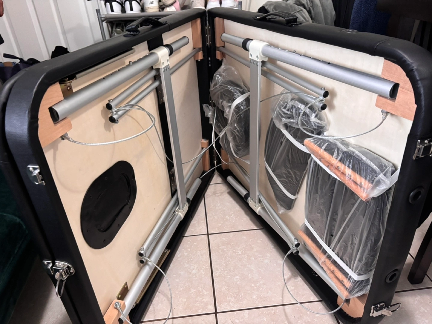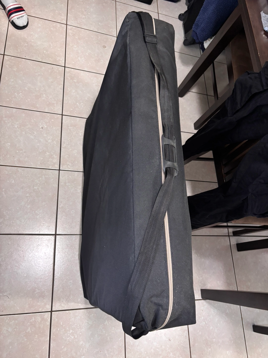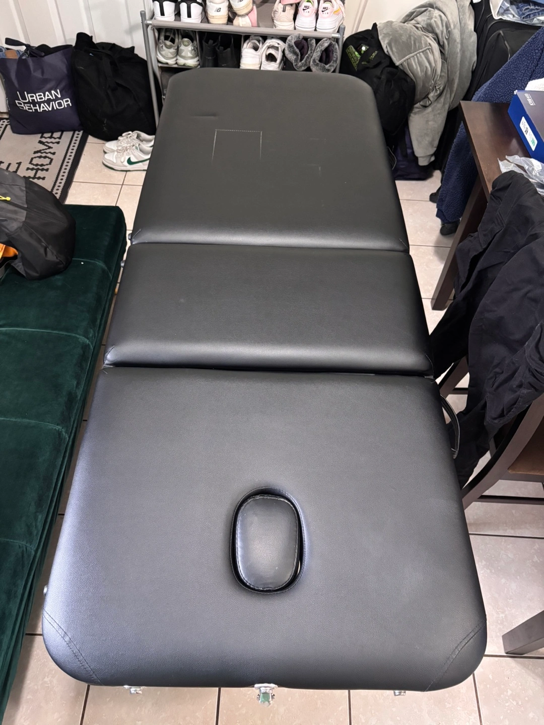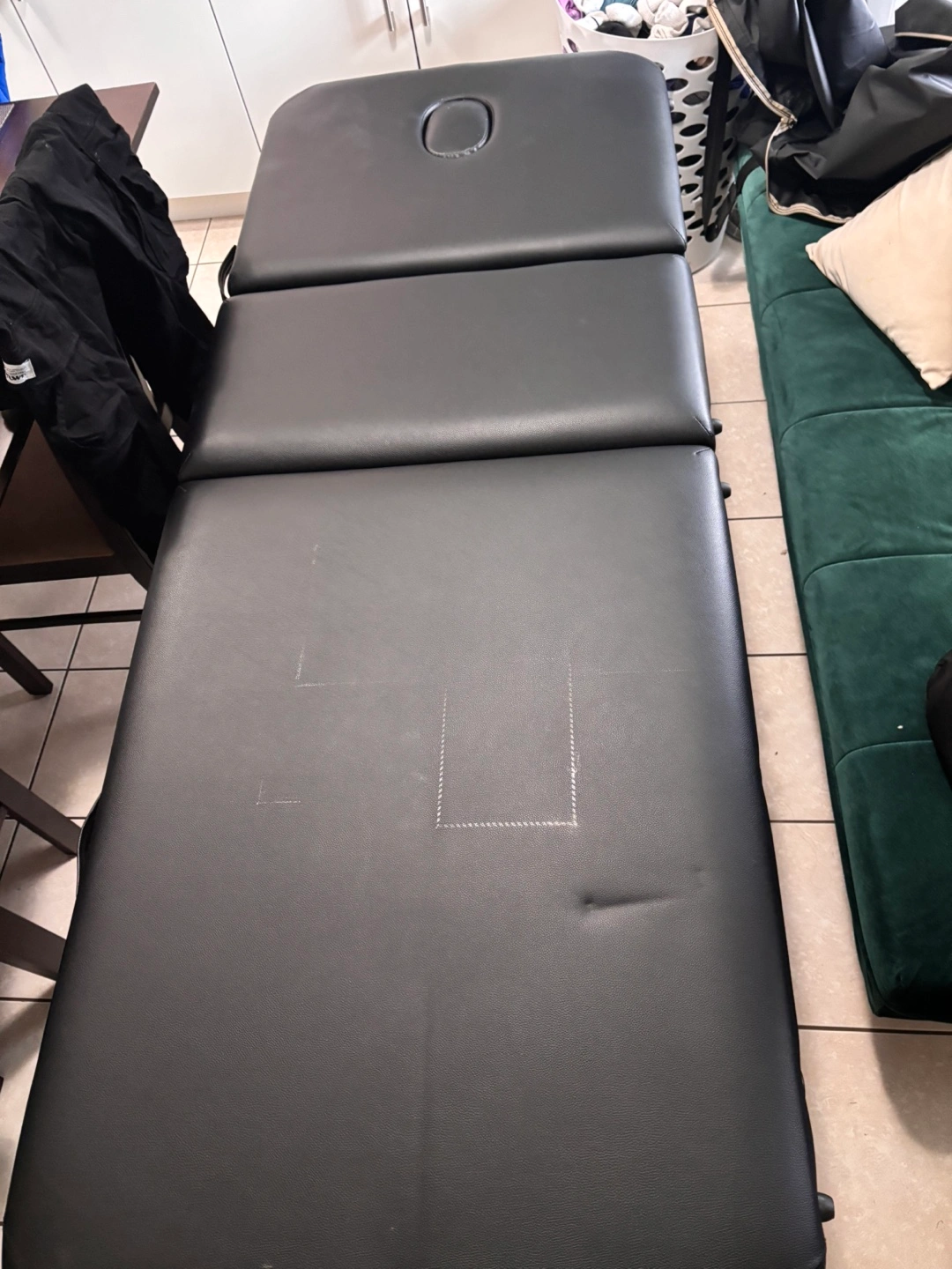 Foldable massage table with carrying bag. Includes face cradle. Used once, I’m not sure what are those marks on the bed, no idea where they came from. We haven’t used it in a long time. Selling cause my mom bought it. Accessories are brand new. Pick up close to the PNE