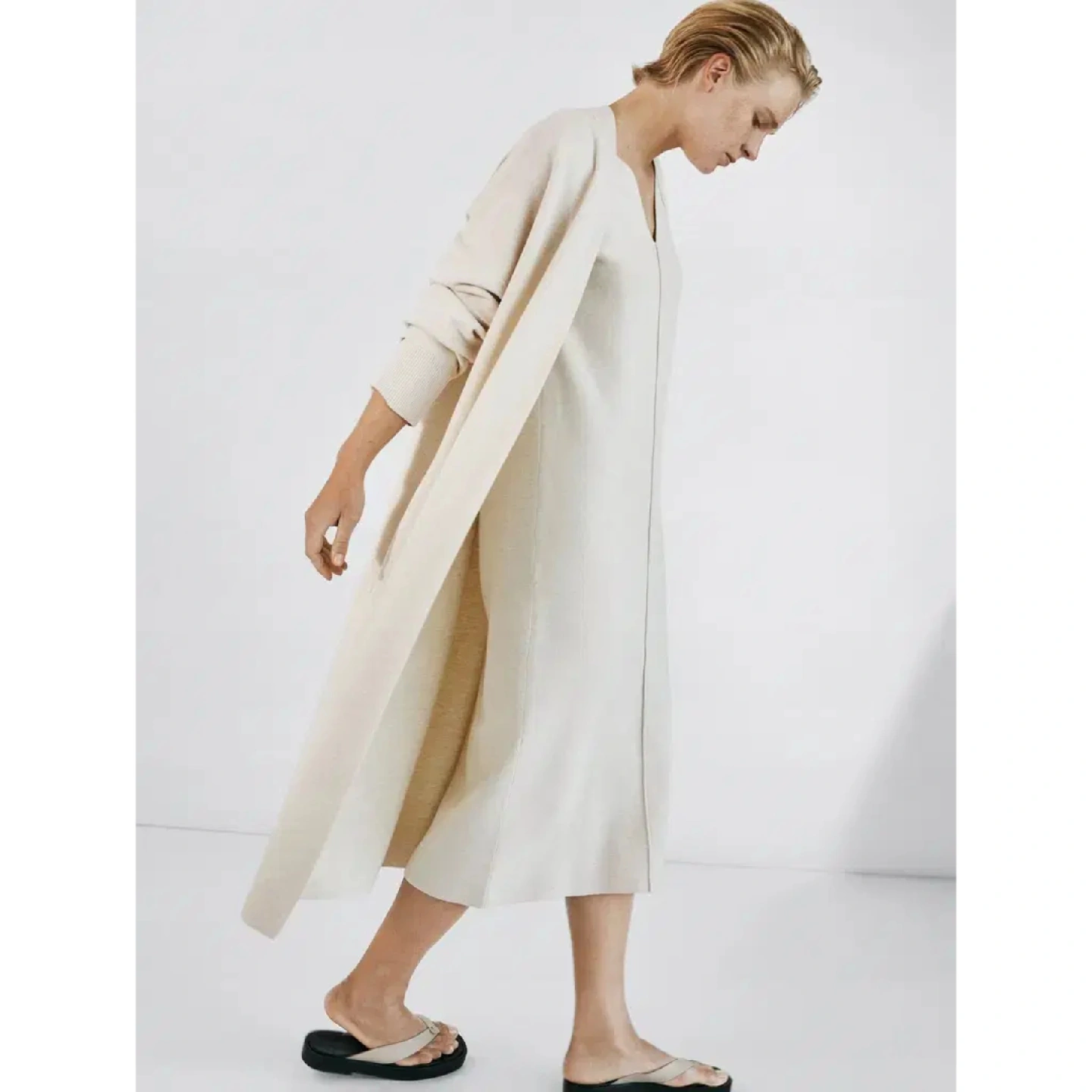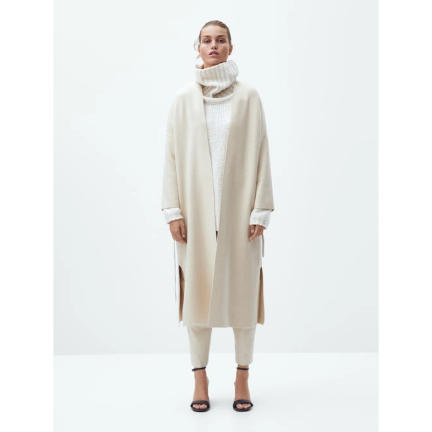 68Wrap yourself in the luxurious comfort of this Massimo Dutti cardigan, perfect for adding a touch of elegance to any outfit. This cozy cardigan features an open-front design and long sleeves, making it ideal for layering during cooler weather. It is in like new Please note: This is a sample sale piece and the inner brand label has been cut. - Style: Cardigan - Colour: Neutral/Beige - Size: M