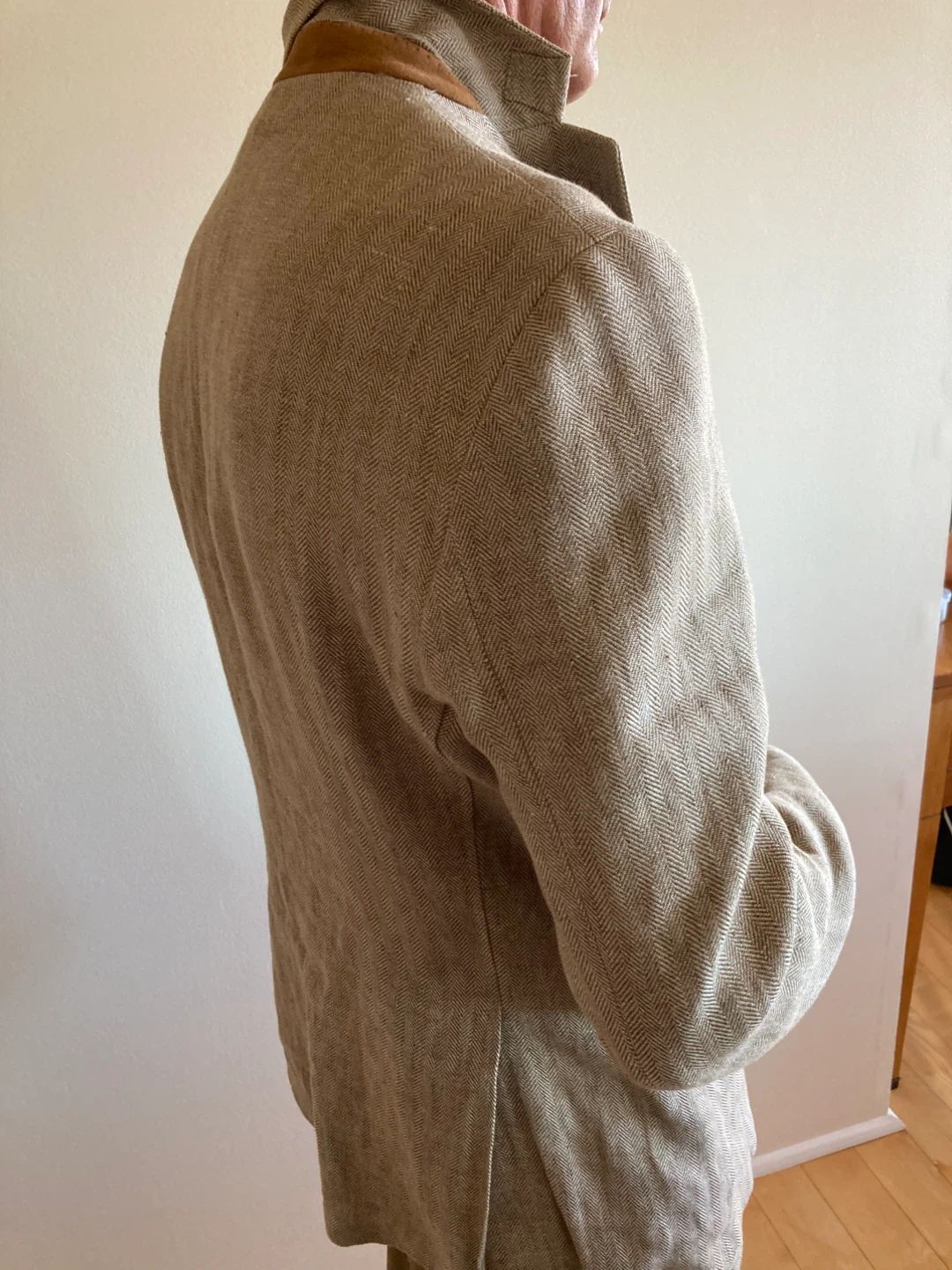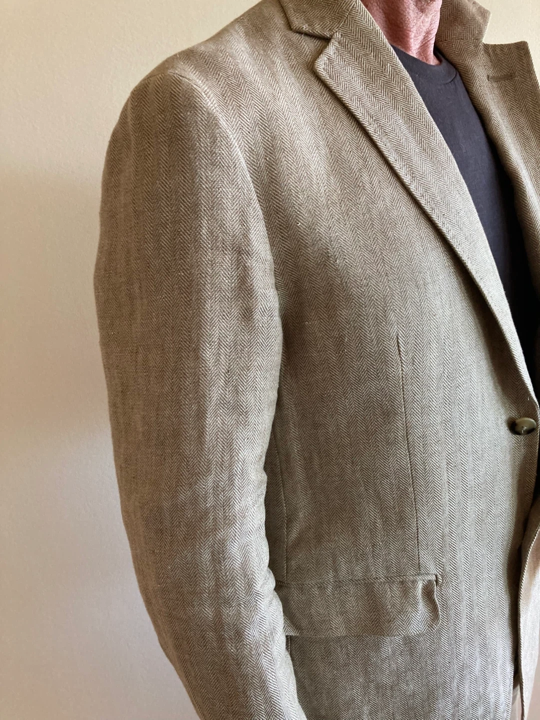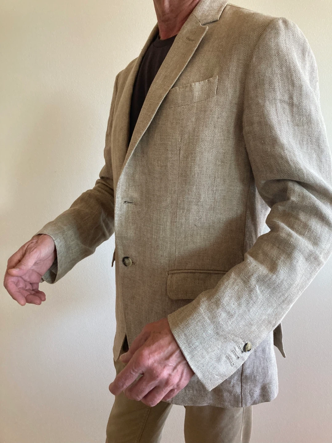 Near new size 42 extra fine linen sorts jkt. Double back vent and surgens cuffs.