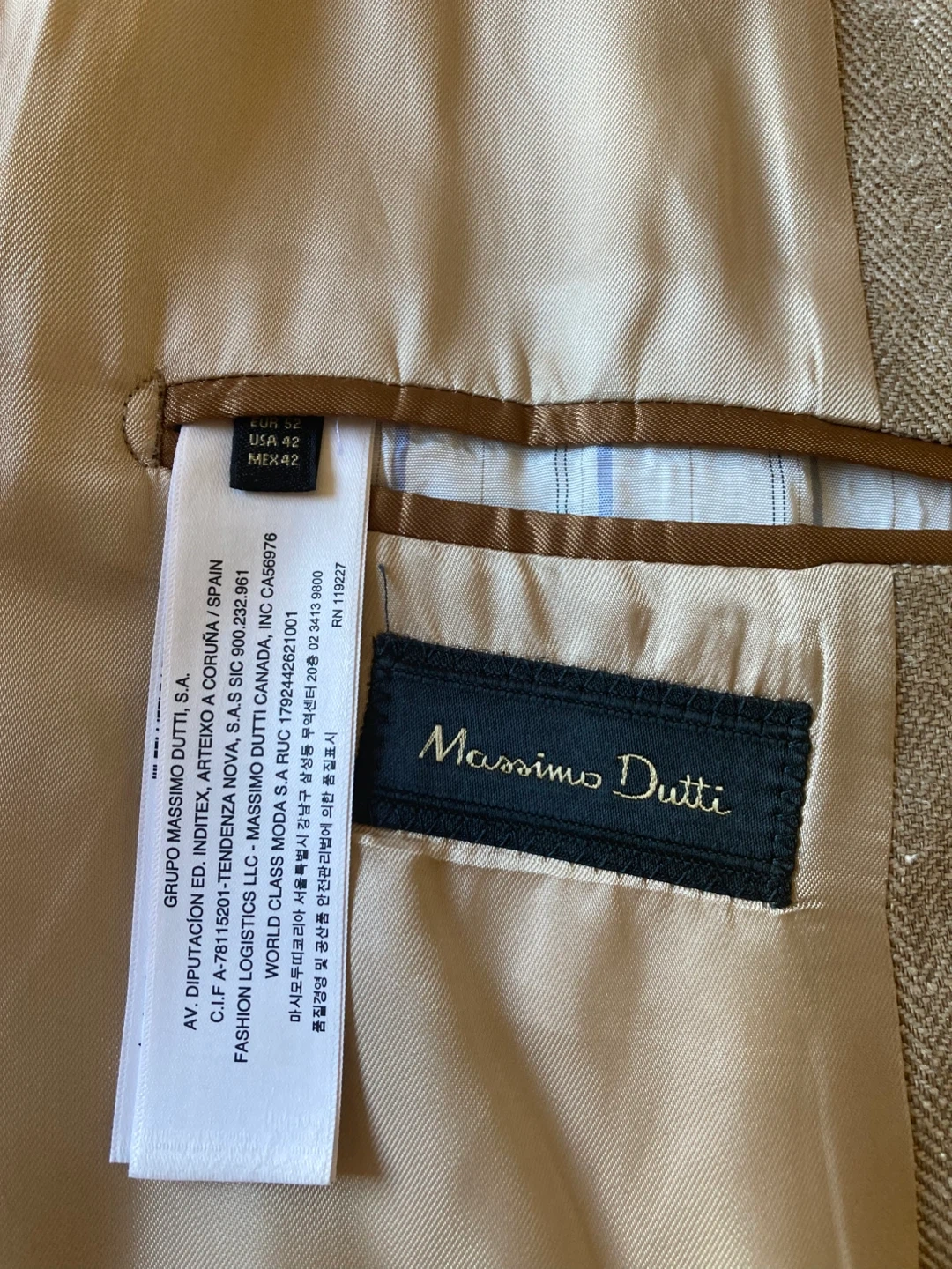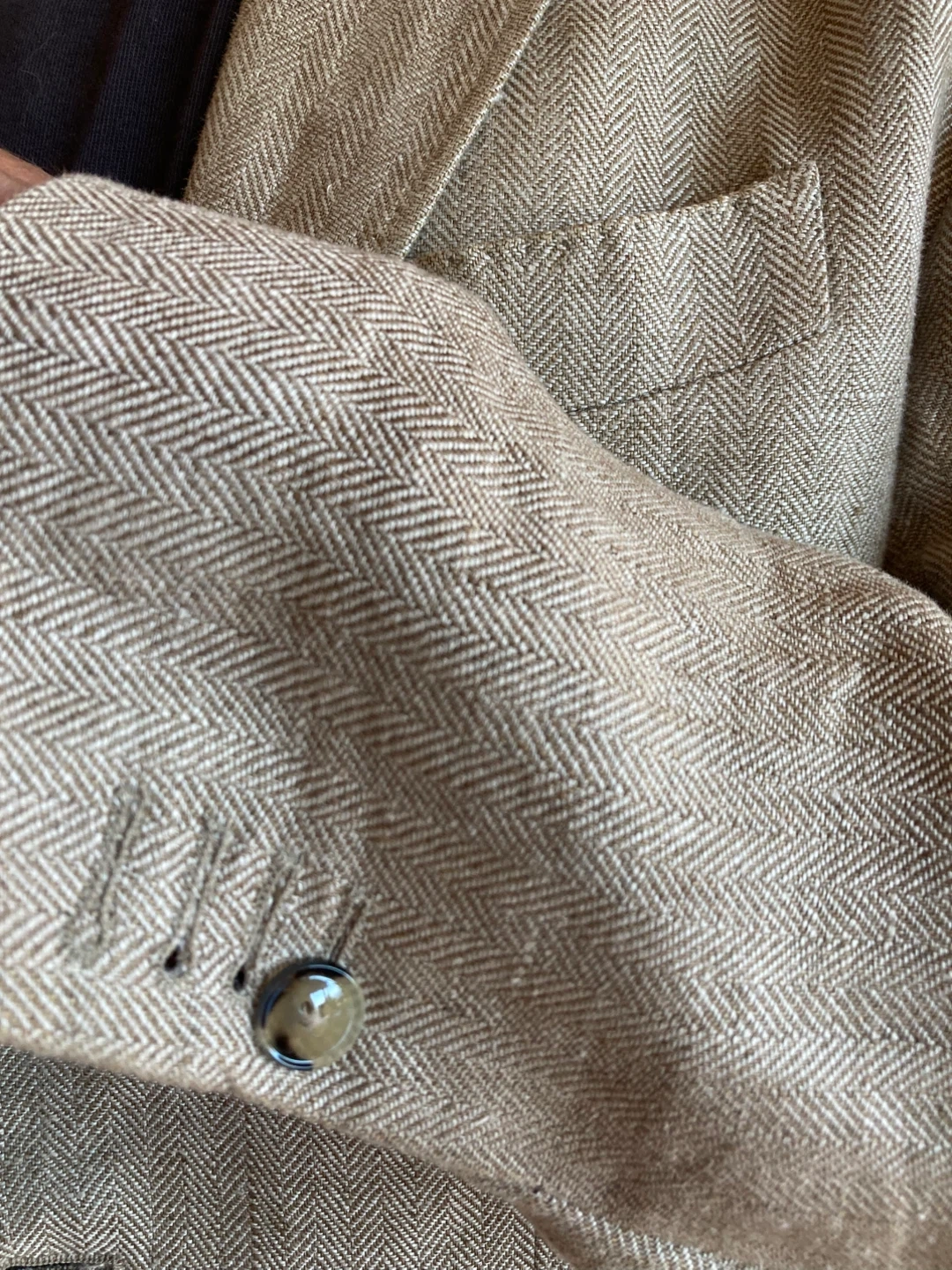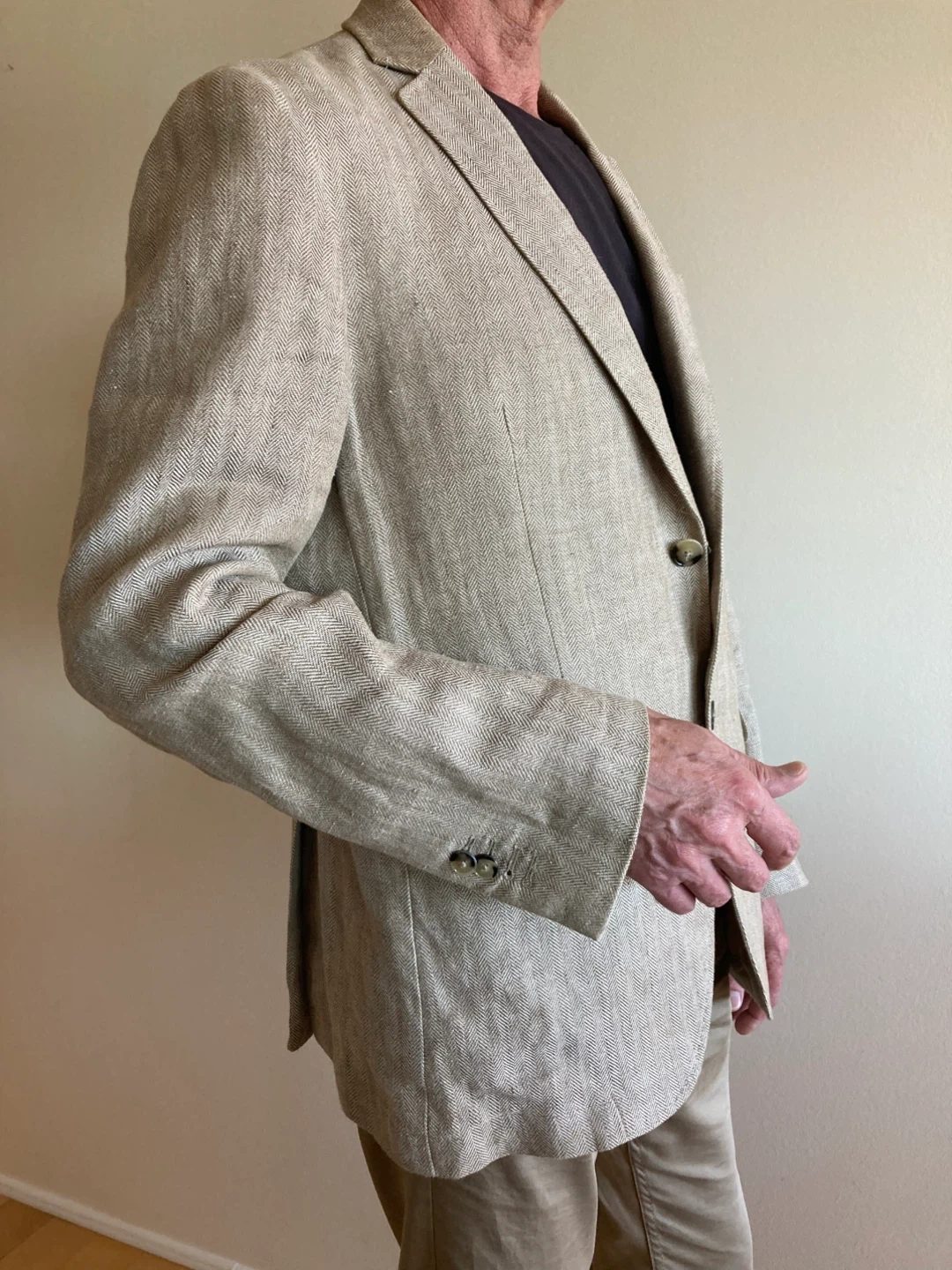 Near new size 42 extra fine linen sorts jkt. Double back vent and surgens cuffs.