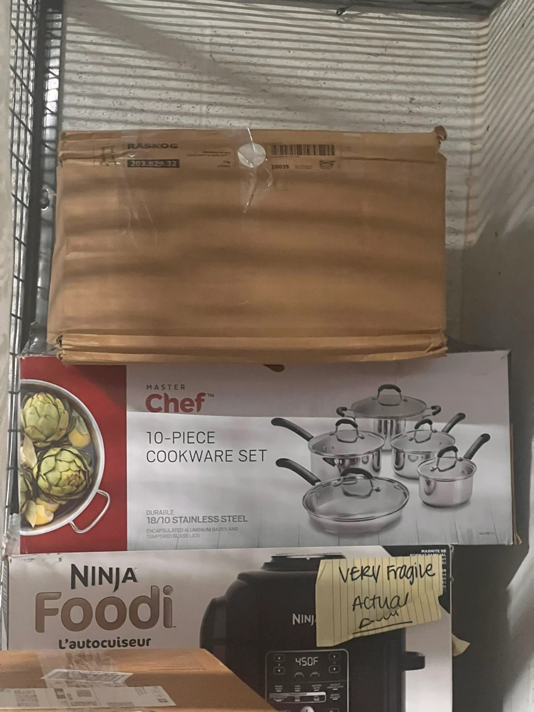 Selling a Master Chef 8 piece cookware set. It's made of durable 18/10 stainless steel with encapsulated aluminum bases and tempered glass lids. Perfect for any kitchen! I know the box says 10 pieces but I’m keeping the medium one while we sort out our move 📦 They will come boxed up and ready for you!!