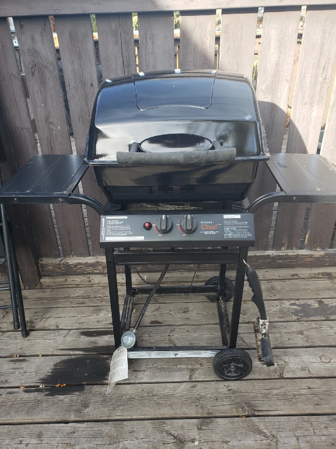 Selling a Master Chef BBQ grill. It's in used condition and ready for your summer cookouts! Includes a grill brush.