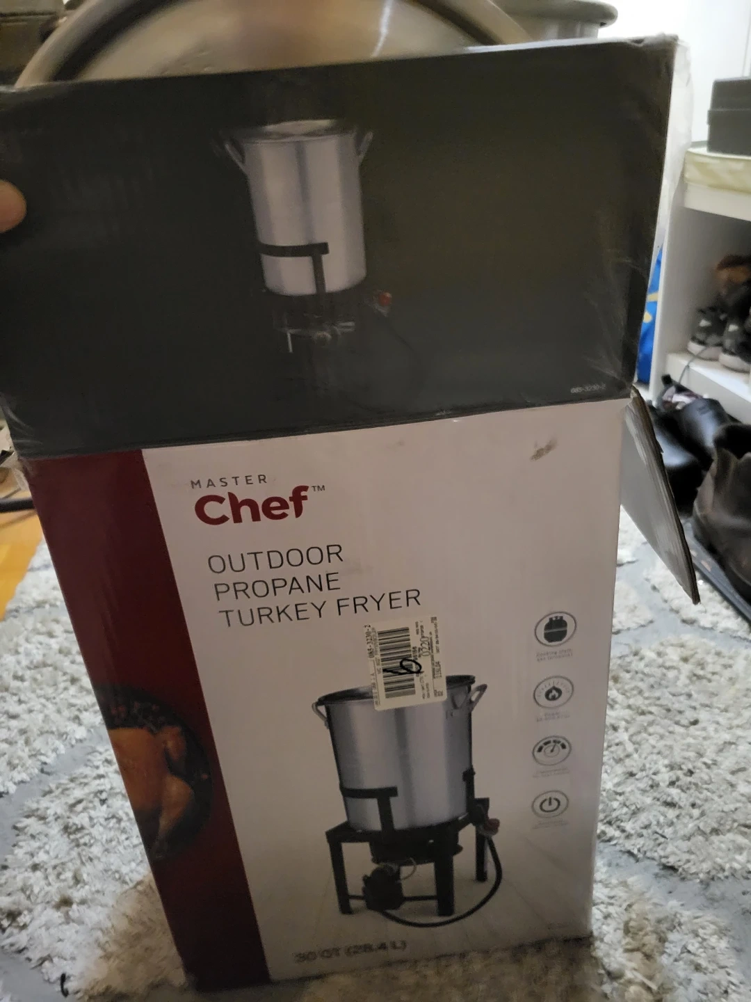 10Selling a brand new Master Chef Outdoor Propane Turkey Fryer still in its original packaging! It's a 30 QT (28.4 L) fryer, perfect for your next big feast. Get ready to deep-fry a delicious turkey with ease!