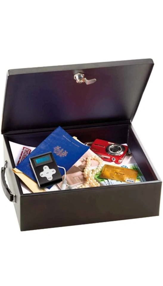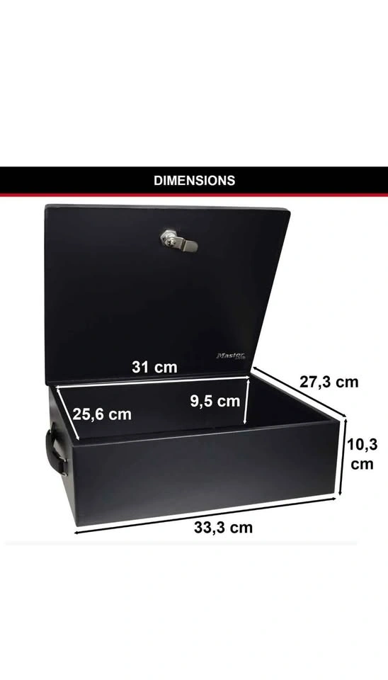 65Fire retardant insulation to protect contents. Protects important paperwork, documents and other valuables at home or work. Handle for convenient carrying. Heavy duty steel construction, 4" x 13-1/4" x 10-3/4". Fits standard size documents