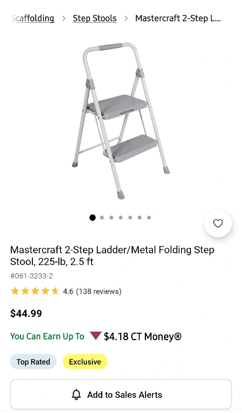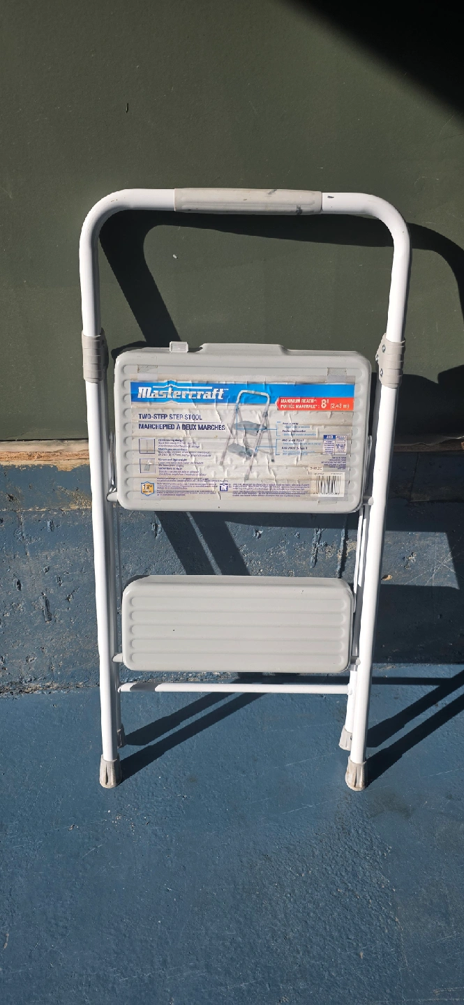 60Looking to sell a Mastercraft 2-Step Ladder/Metal Folding Step Stool. It's in great shape and ready to help with those hard-to-reach spots around the house. Retails for $44.99.