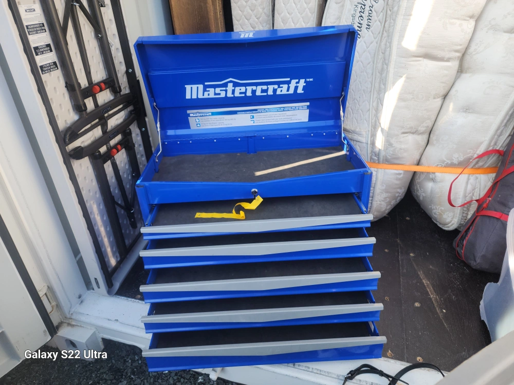 Selling a Mastercraft tool chest in blue. It has multiple drawers for organizing your tools. Perfect for a garage or workshop
