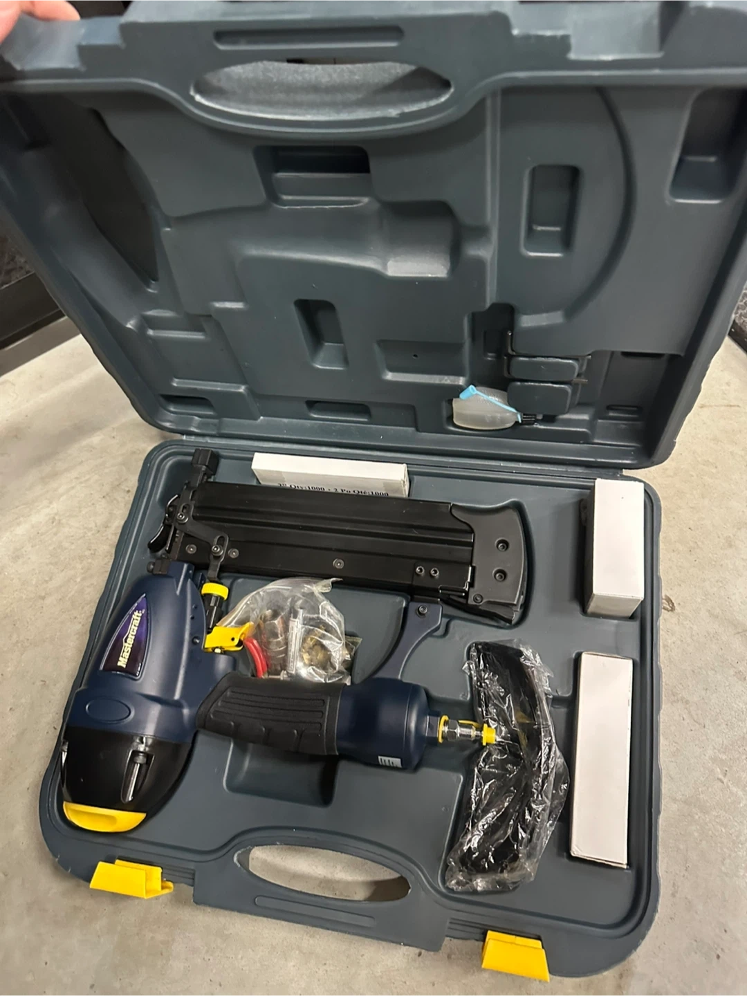 Mastercraft nailer in a carrying case. Comes with all the components shown in the picture. Great for home projects and renovations!