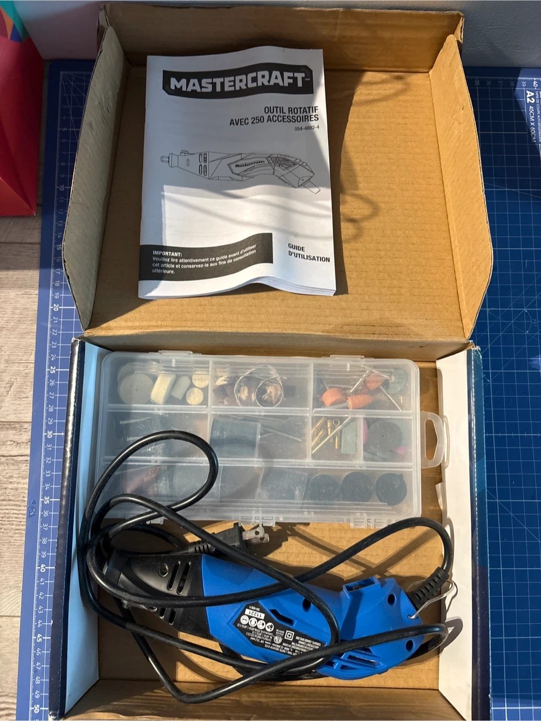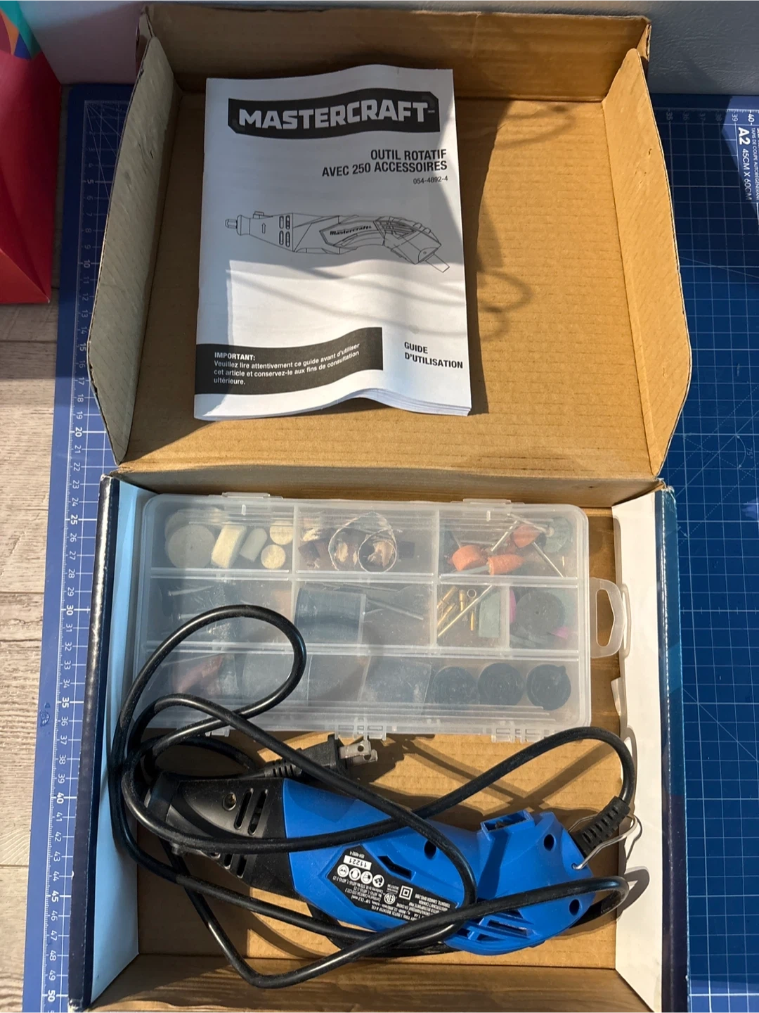 215Selling a Mastercraft rotary tool kit that comes with 250 accessories! It is in like-new condition and includes the original box and instruction guide. This rotary tool has variable speeds ranging from 8,000 to 32,000 RPM, making it versatile for various tasks. It also comes with various sized collets. A great addition to any DIY enthusiast's toolkit!
