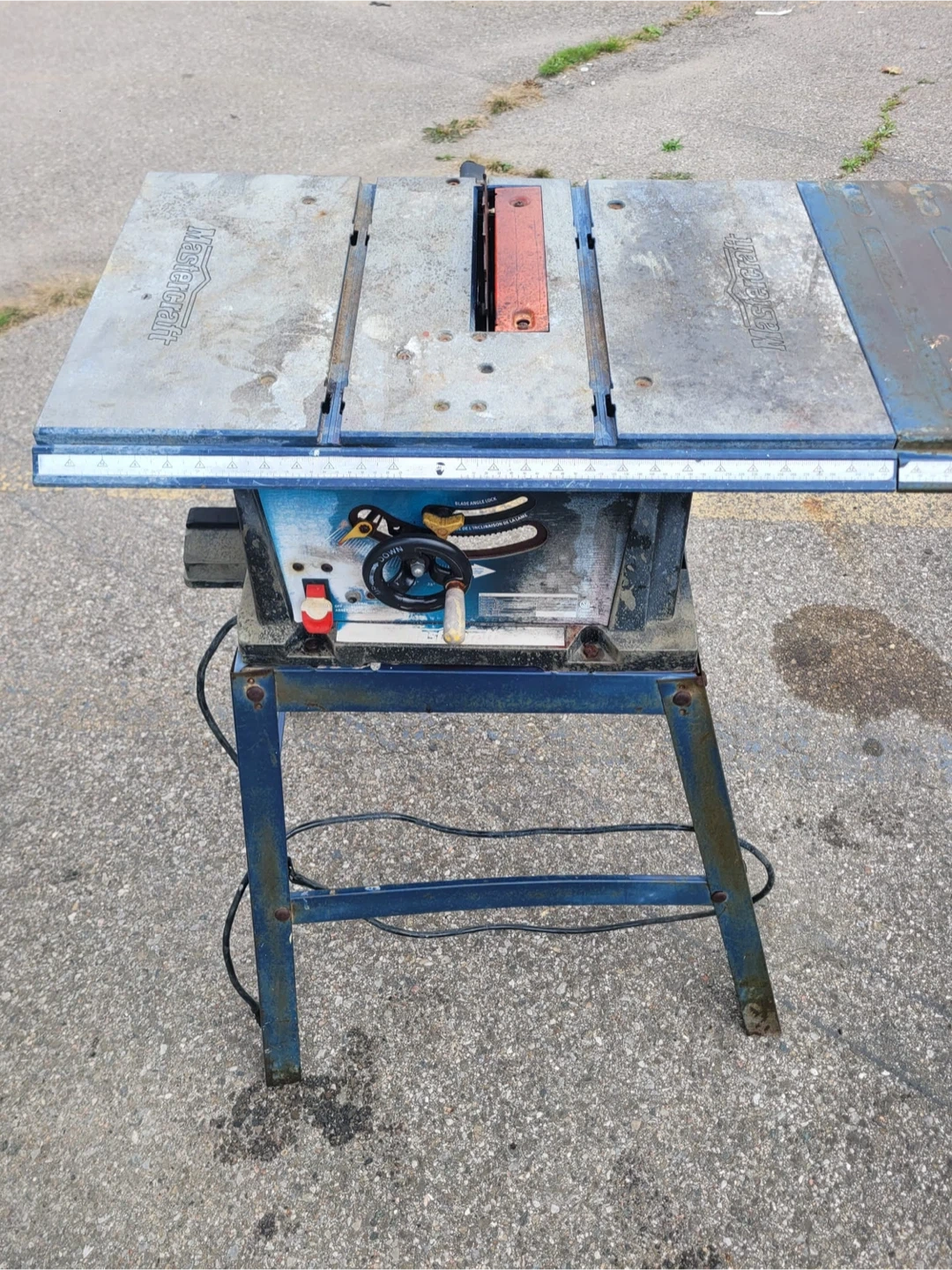 Mastercraft table saw in used condition. Please review photos for condition. It is a sturdy saw and ready for your next project