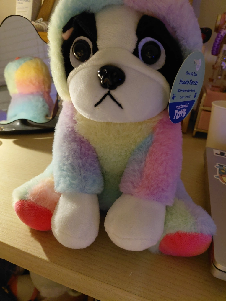 This adorable Mastermind Toys Hoodie Hound plush is looking for a new home! It's in great condition and features a cute hoodie design with removable hood. Perfect for kids or anyone who loves a cuddly companion