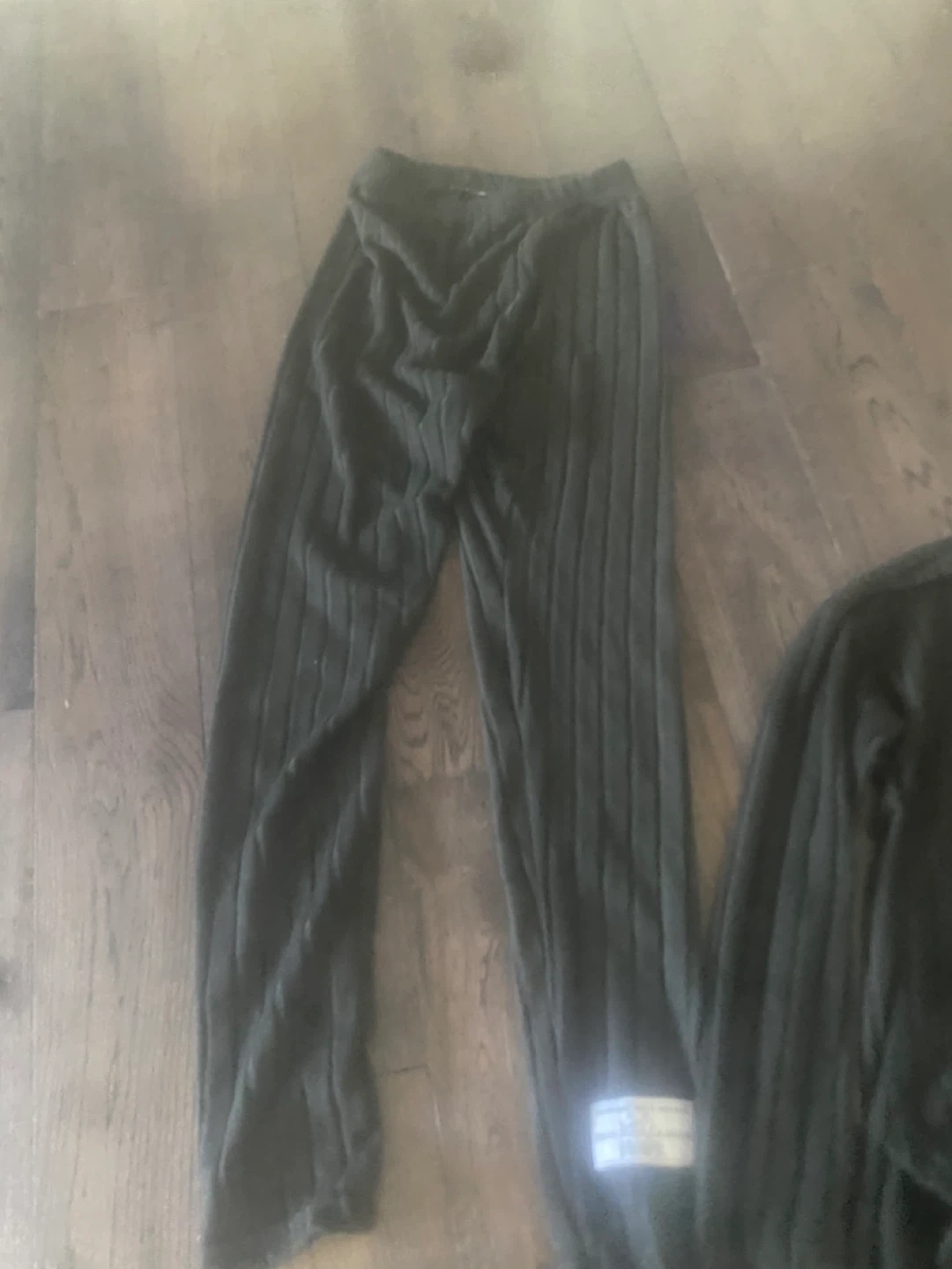 Selling a comfy black hoodie and leggings set! The material is soft and stretchy, perfect for lounging around the house or running errands. The set is in great condition with minimal signs of wear. Size is not indicated, please see photos for details