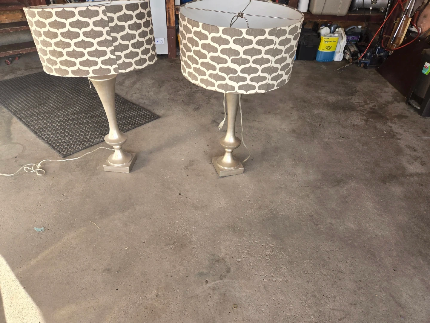 60Selling a set of two matching table lamps. They feature a patterned shade and a silver-tone base. They'd be a great addition to any living room or bedroom. Text or call 4039753725