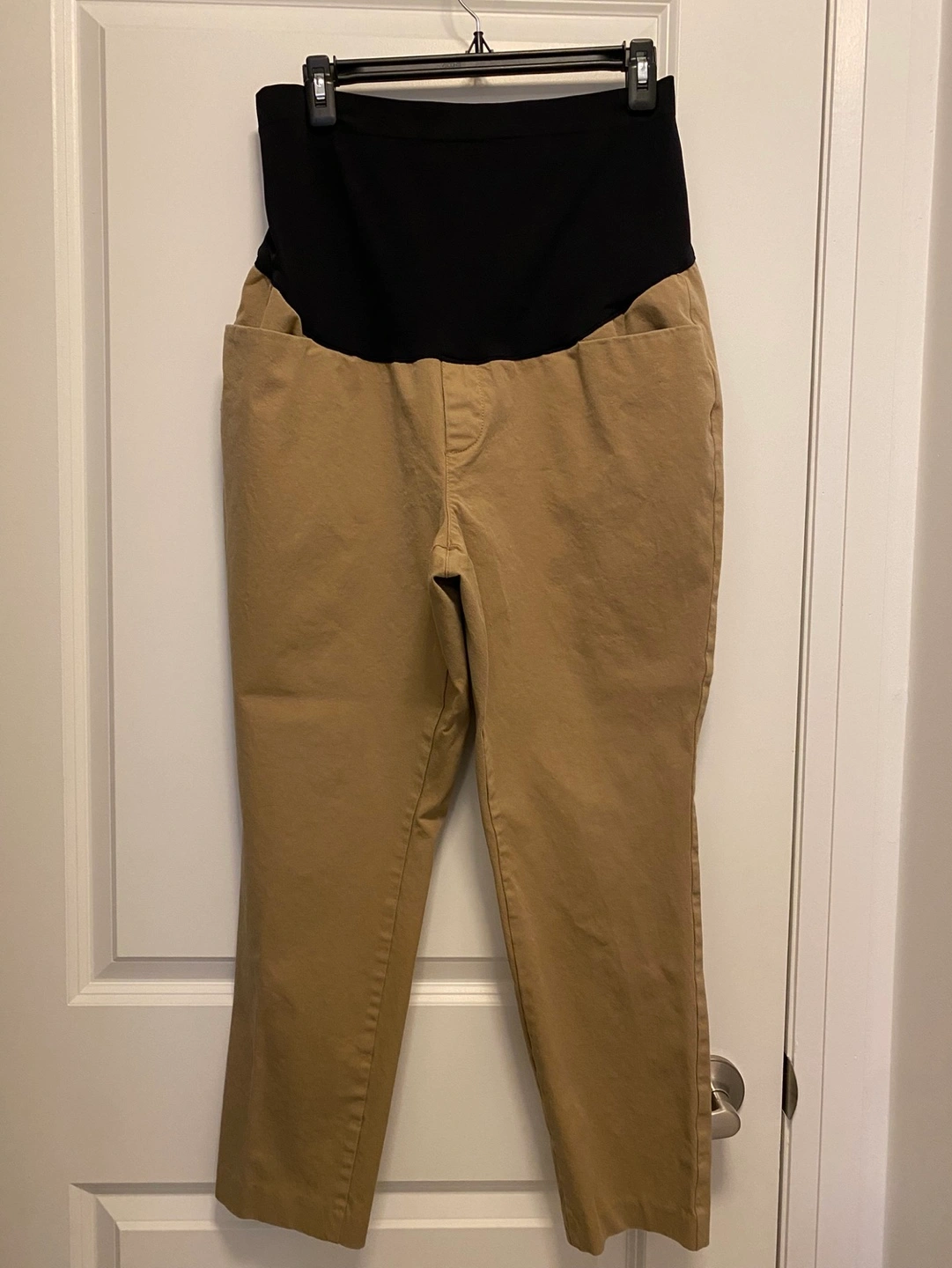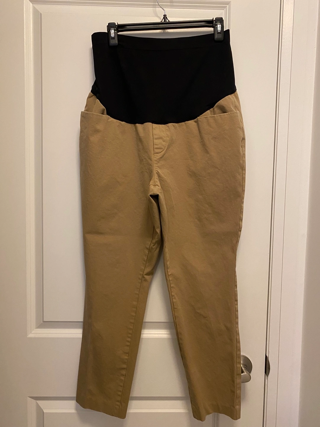 241Tan coloured maternity pants. Over the belly style. Cropped length. Two pockets. https://oldnavy.gapcanada.ca/browse/product.do?pid=7427950731402&locale=en_CA#pdp-page-content