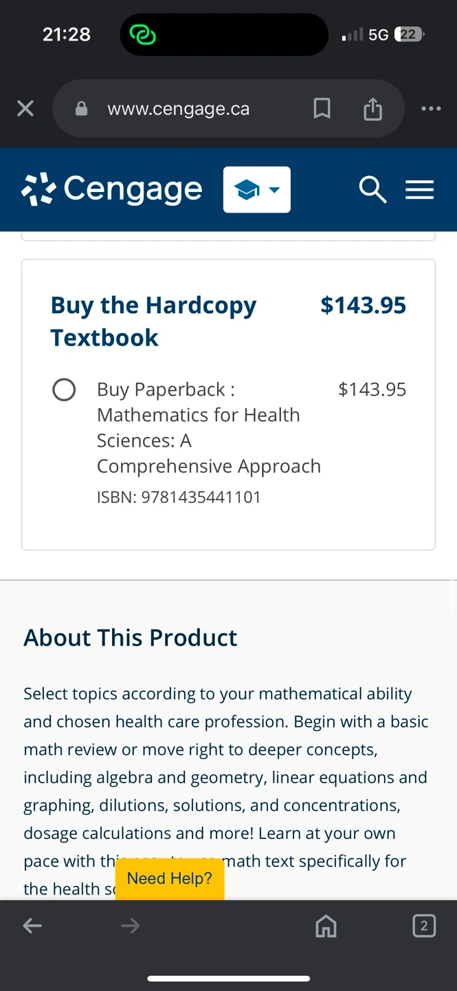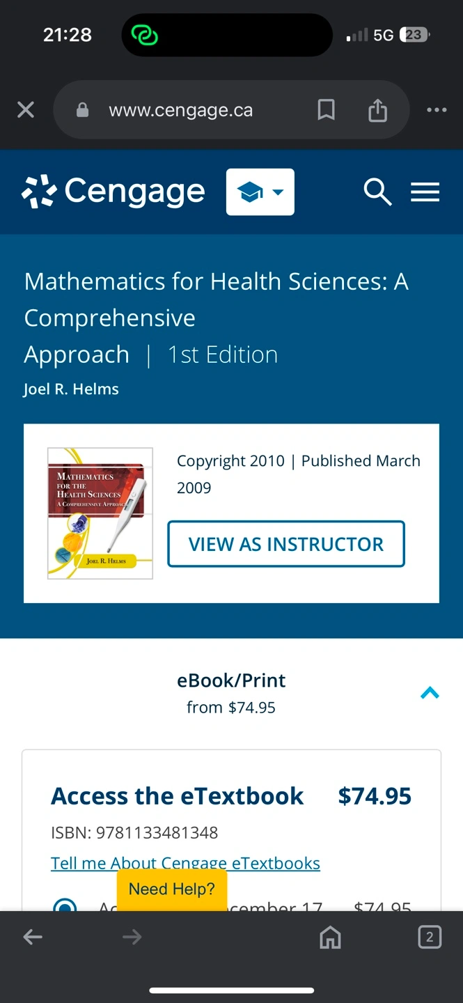 Textbook for Mathematics for the Health Sciences. 1st edition. Hardcopy. Have more books. Willing to negotiate bundle price A Comprehensive Approach - 1st Edition Textbook