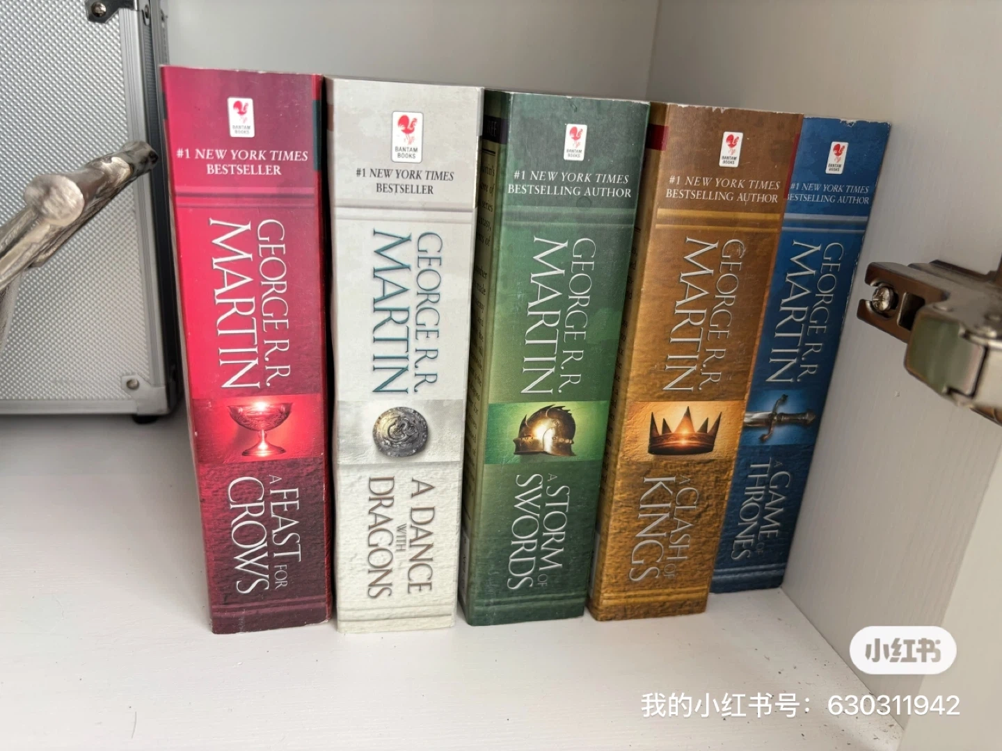 George R.R. Martin's A Song of Ice and Fire book series. Includes A Feast for Crows, A Dance with Dragons, A Storm of Swords, A Clash of Kings, and A Game of Thrones. These are #1 New York Times bestsellers. Great for fantasy readers!
