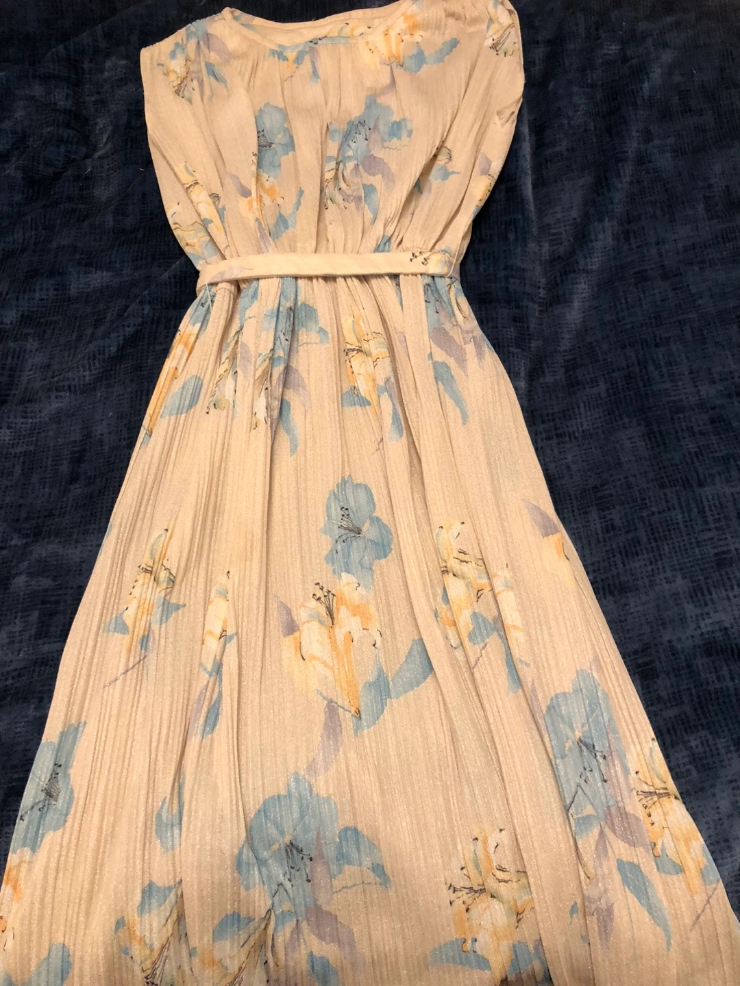 This is a lovely Matinée dress with a matching jacket. It has a beautiful floral pattern and a comfortable fit. Perfect for a special occasion or a day out