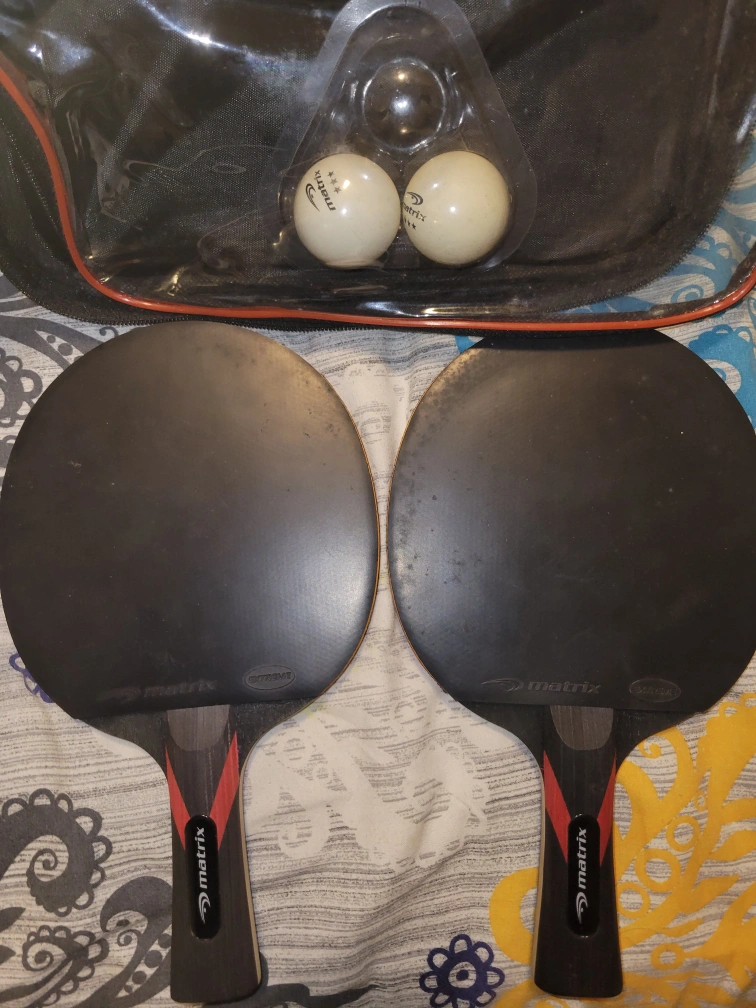 215Selling a Matrix ping pong set! It comes with two paddles and two balls, all in a convenient carrying case. Perfect for some fun games with friends and family!