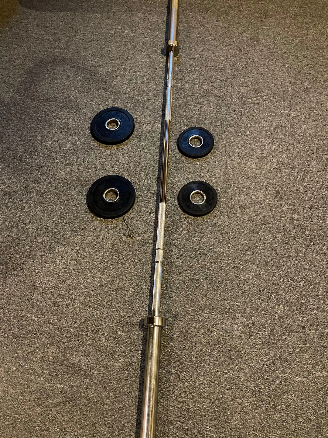 5For Sale: Olympic Barbell Set – $130 Selling a Matsuru Olympic barbell set in excellent condition. Includes: 1 Olympic Barbell (7 ft / 45 lbs) 2 × 5 lb plates 2 × 2.5 lb plates Perfect for a home gym or anyone starting strength training. Solid, durable, and smooth—bought but never used. Price: $130 Pickup – Ajax area Message if interested!