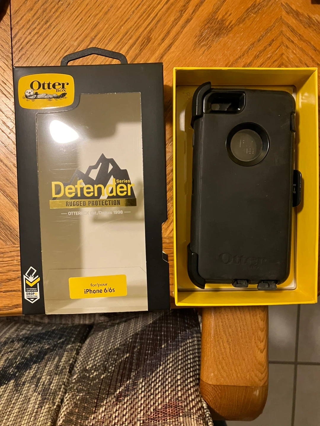 OtterBox Defender Series case for iPhone 6/6s. Features drop, dust, and scratch protection with a triple-layer design. Includes belt clip holster.
