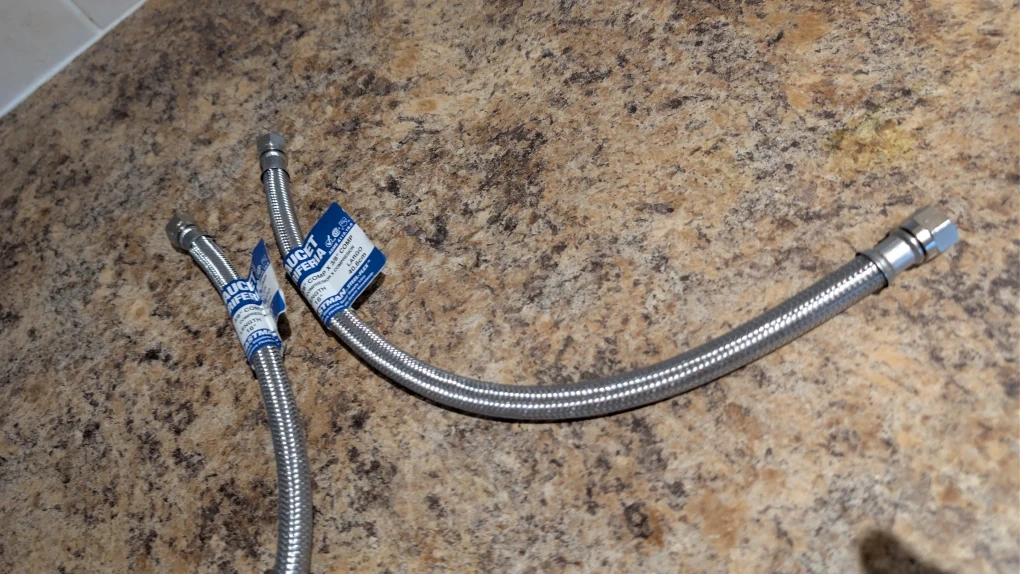 Selling 2 new Eastman Steel-Flex faucet supply line. It's 3/8" compression x 3/8" compression and 16 inches (40.6cm) long.