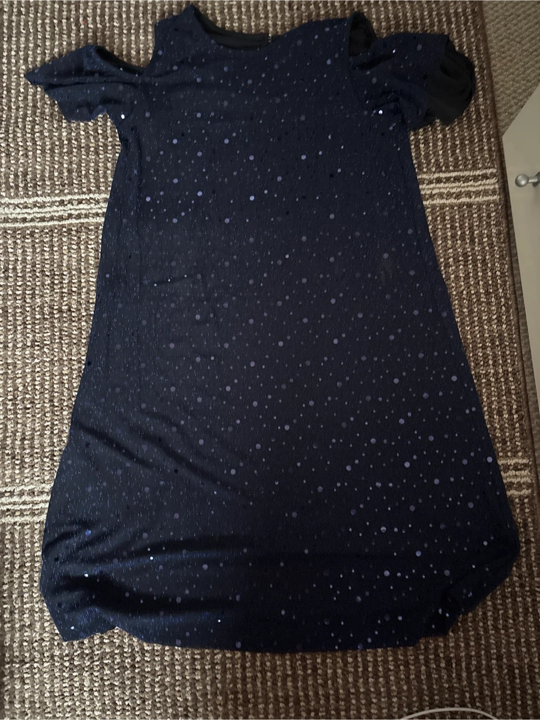 10Selling a cute Max dress, perfect for a young teen! It's a size 15-16 years and features a stylish design with shoulder cutouts and a sparkly pattern. The dress is in great condition and ready for a new home