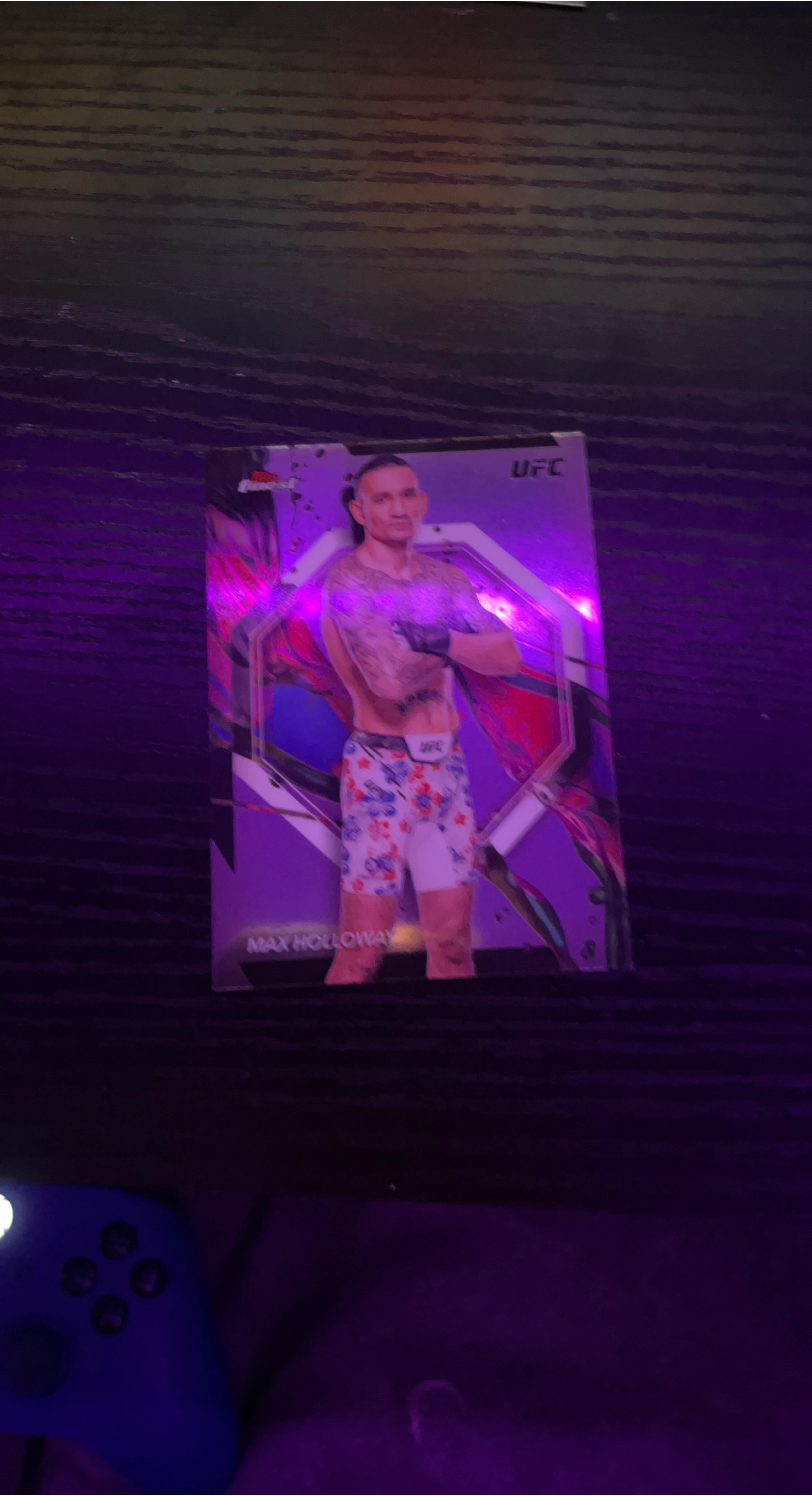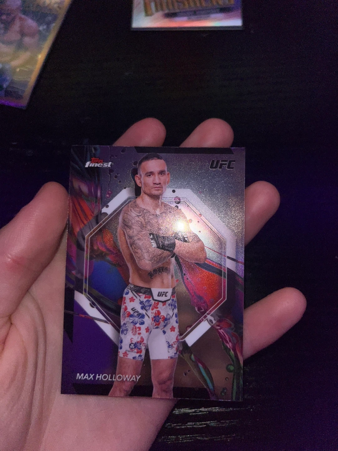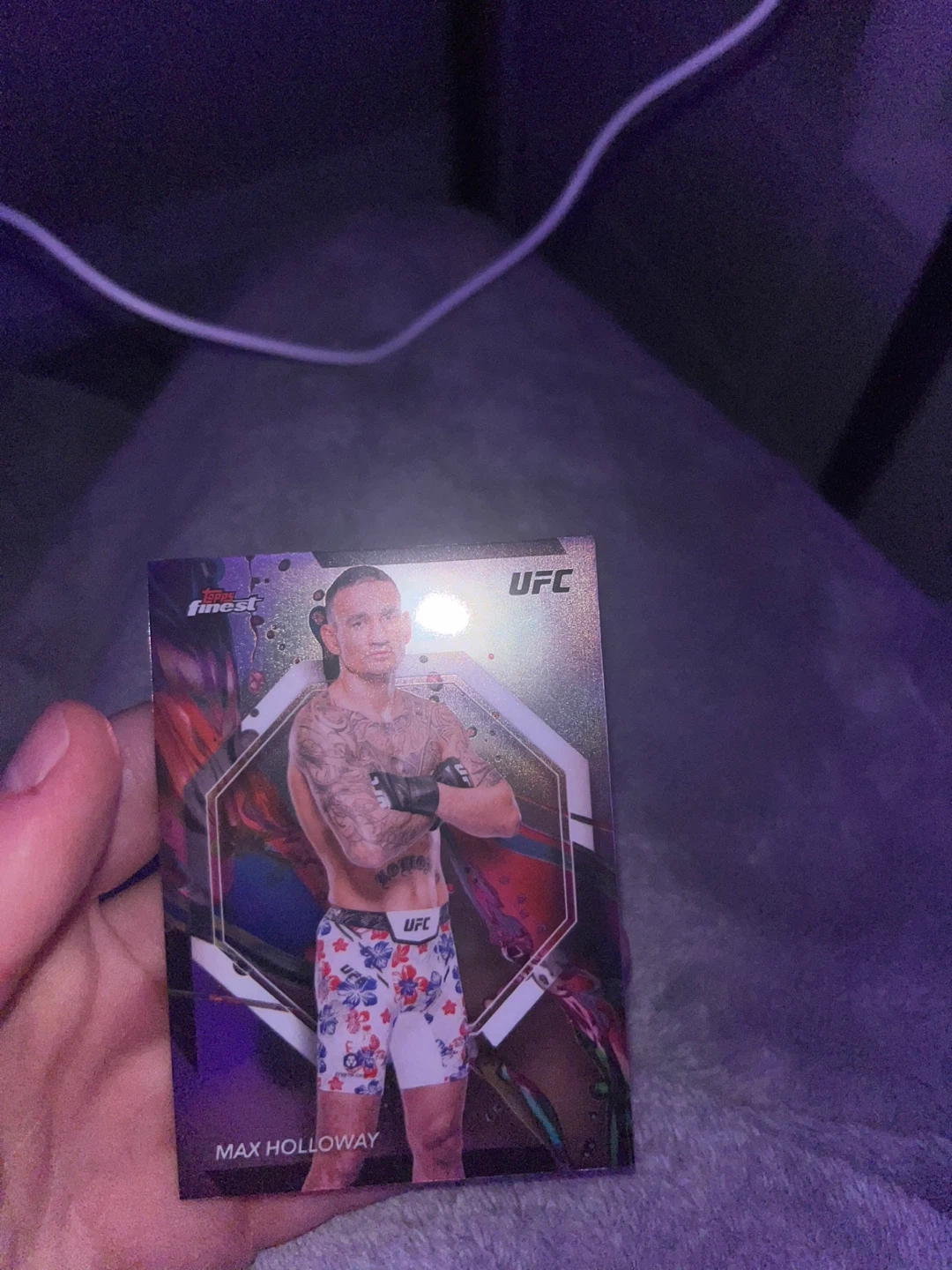 Selling a Max Holloway UFC Topps Finest trading card. It's in great condition and a fantastic addition to any UFC or trading card collection