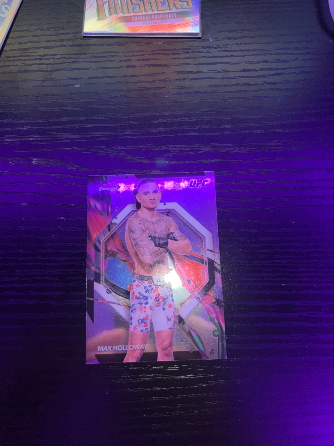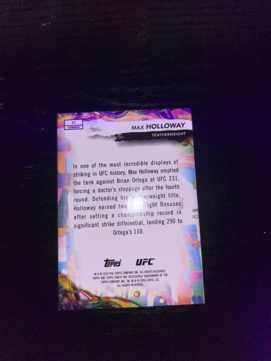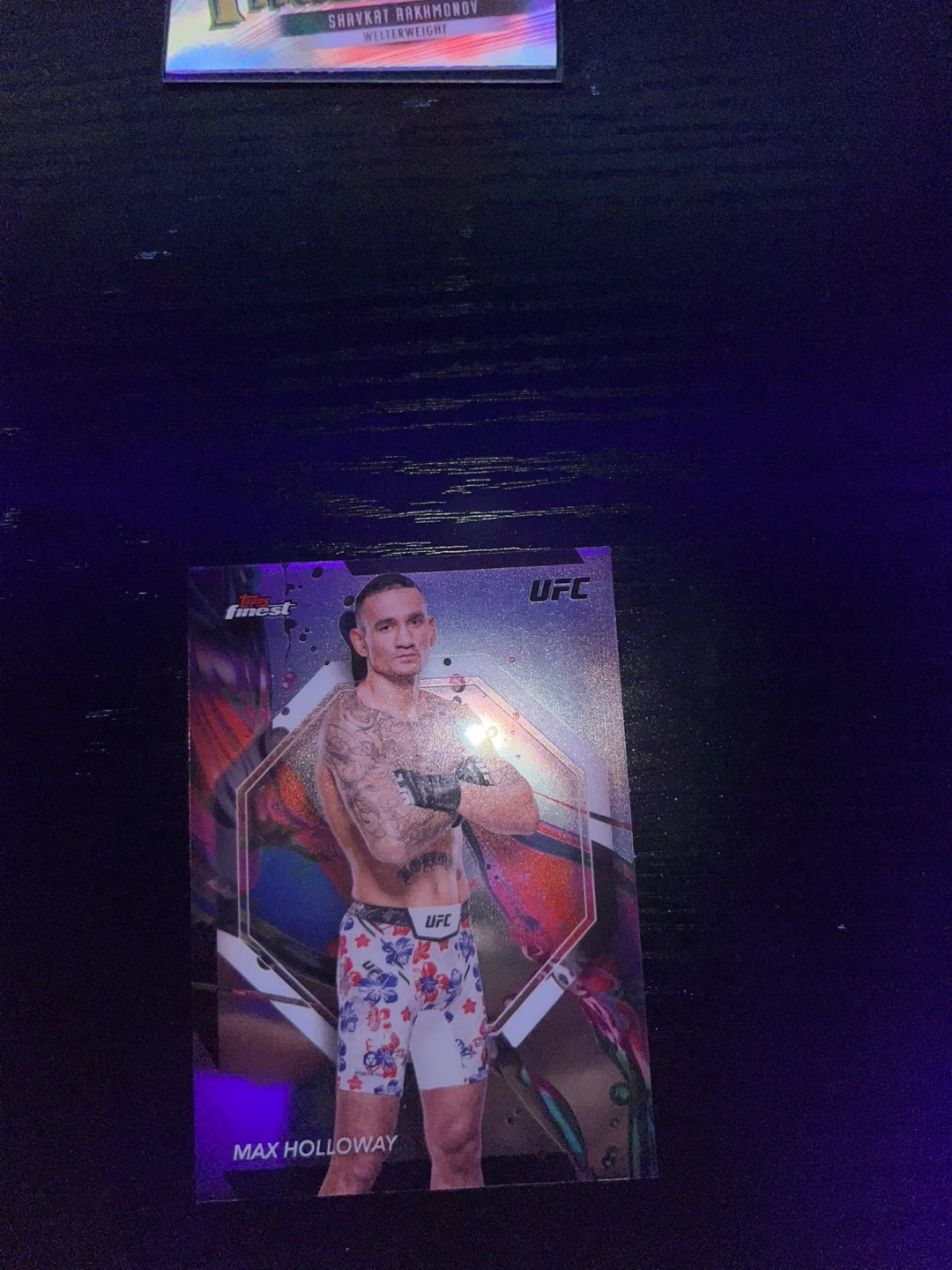 Selling a Max Holloway UFC Topps Finest trading card. It's in great condition and a fantastic addition to any UFC or trading card collection