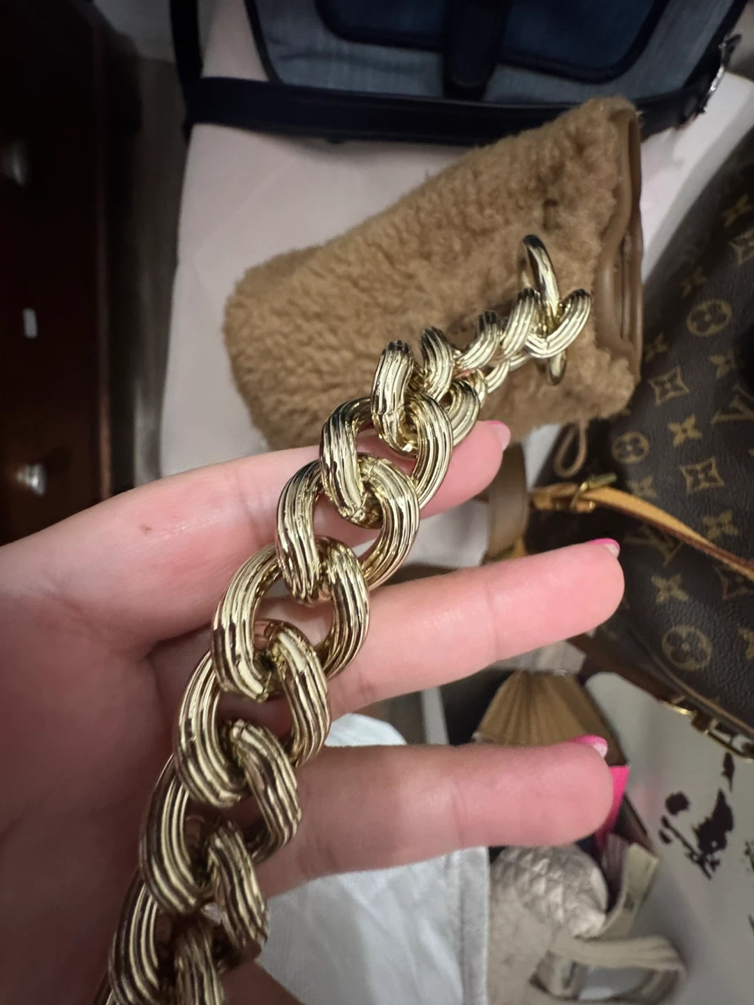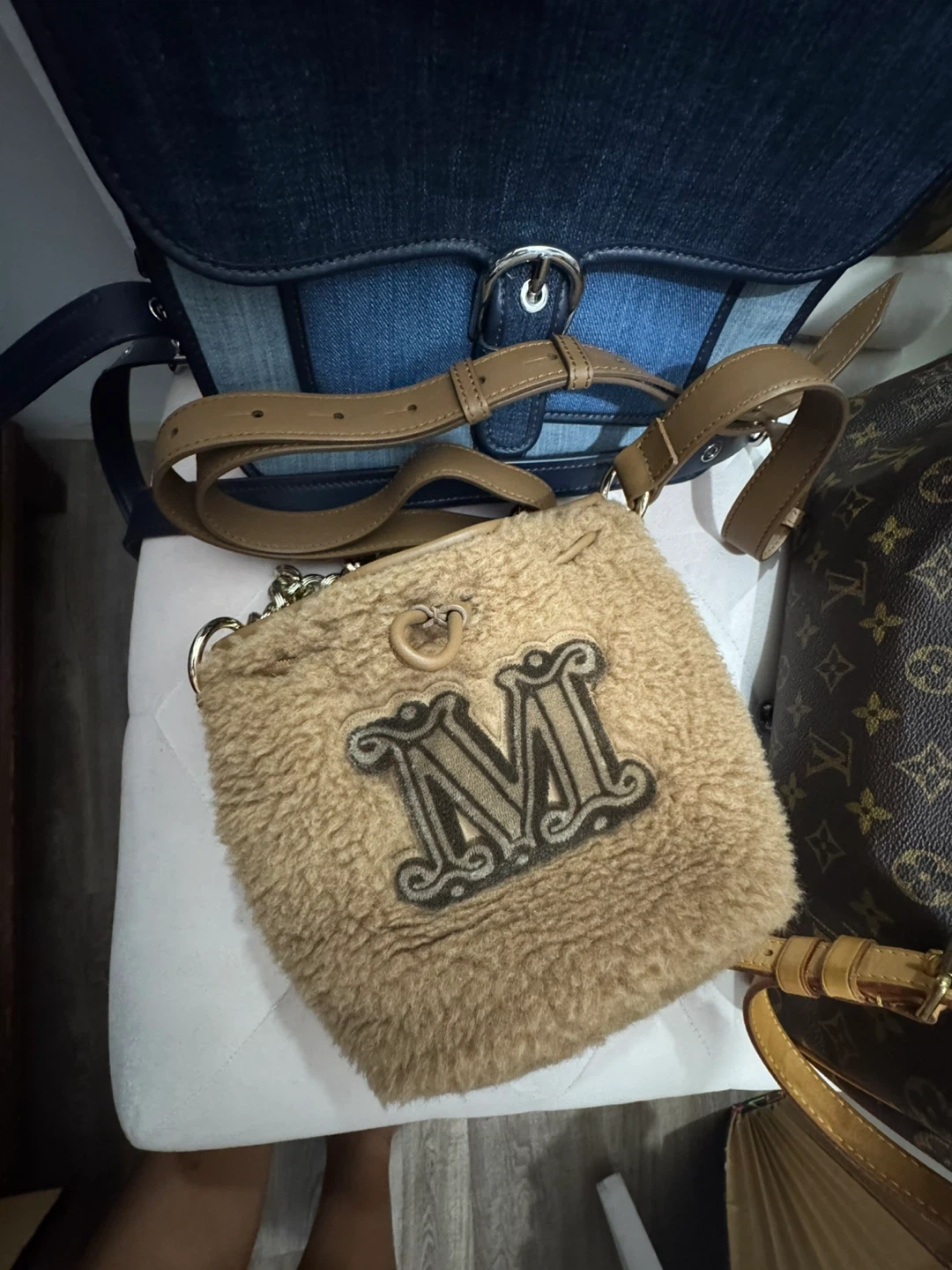 67Selling a cute Max Mara teddy bucket bag! It's in great condition and perfect for adding a touch of cozy chic to any outfit. The bag features a unique teddy texture and a stylish chain strap. Gold strap is beautiful! Authentic obviously No low ballers Mississauga cash pick up