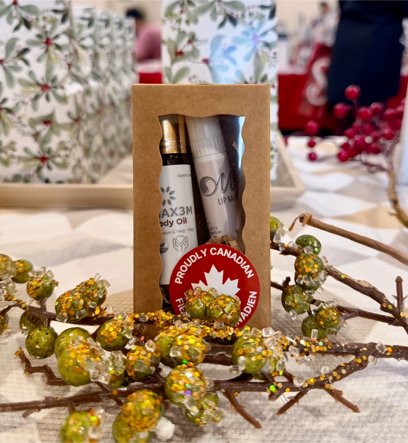 5Shop our holiday gift OMAX3M body oil and lip balm set. It supports magnesium and ylang-ylang essential oil for balance & clarity. Proudly Canadian!