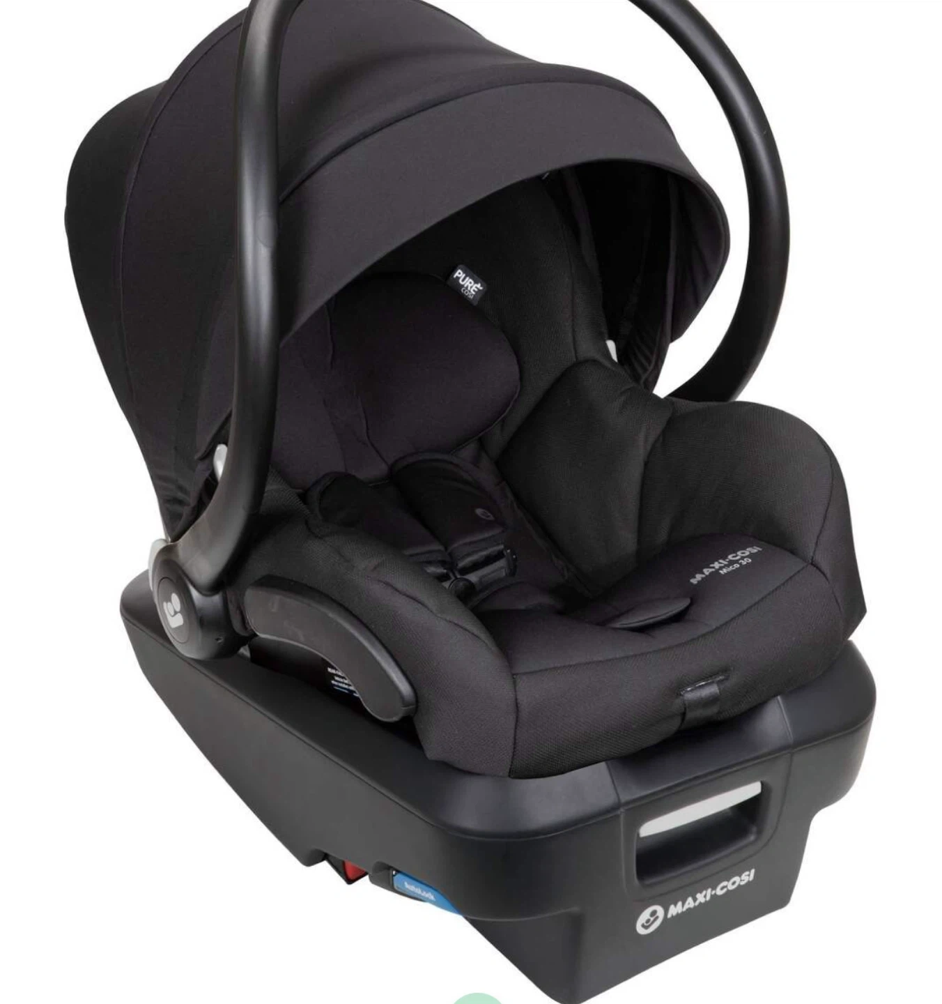 Selling a Maxi-Cosi infant car seat in black. It's in good condition and ready for a new little one. This car seat is designed for safety and comfort, making it perfect for your baby's first rides, age 0 to 2 years, used not too much due to moving other country