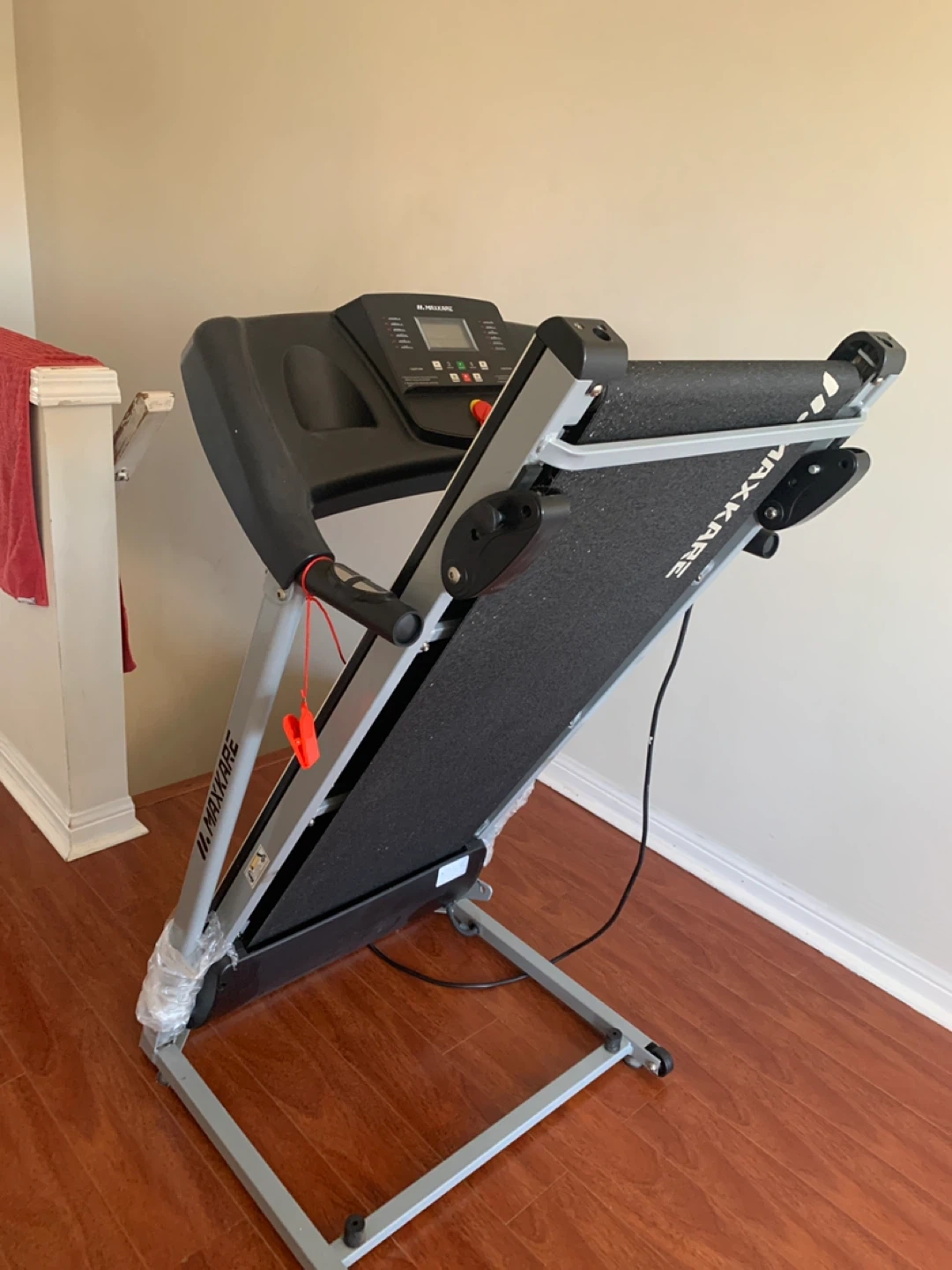 Selling a MaxKare folding treadmill. It's in great condition and perfect for home workouts! It can be easily folded for storage when not in use. Great for small spaces!