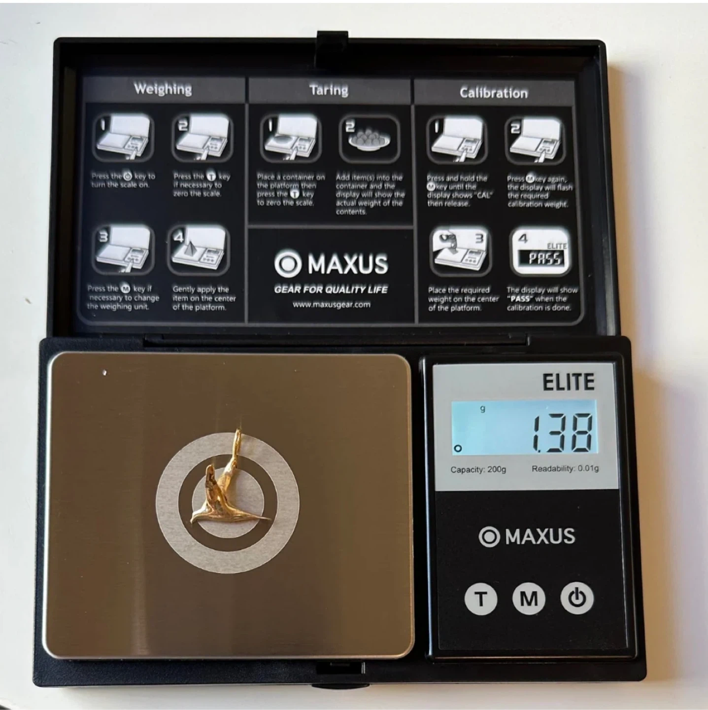 248Selling a Maxus Elite digital scale! This scale is perfect for precise measurements, with a readability of 0.01g and a capacity of 200g. It's in great condition and comes with the original box. Great for weighing small items accurately!