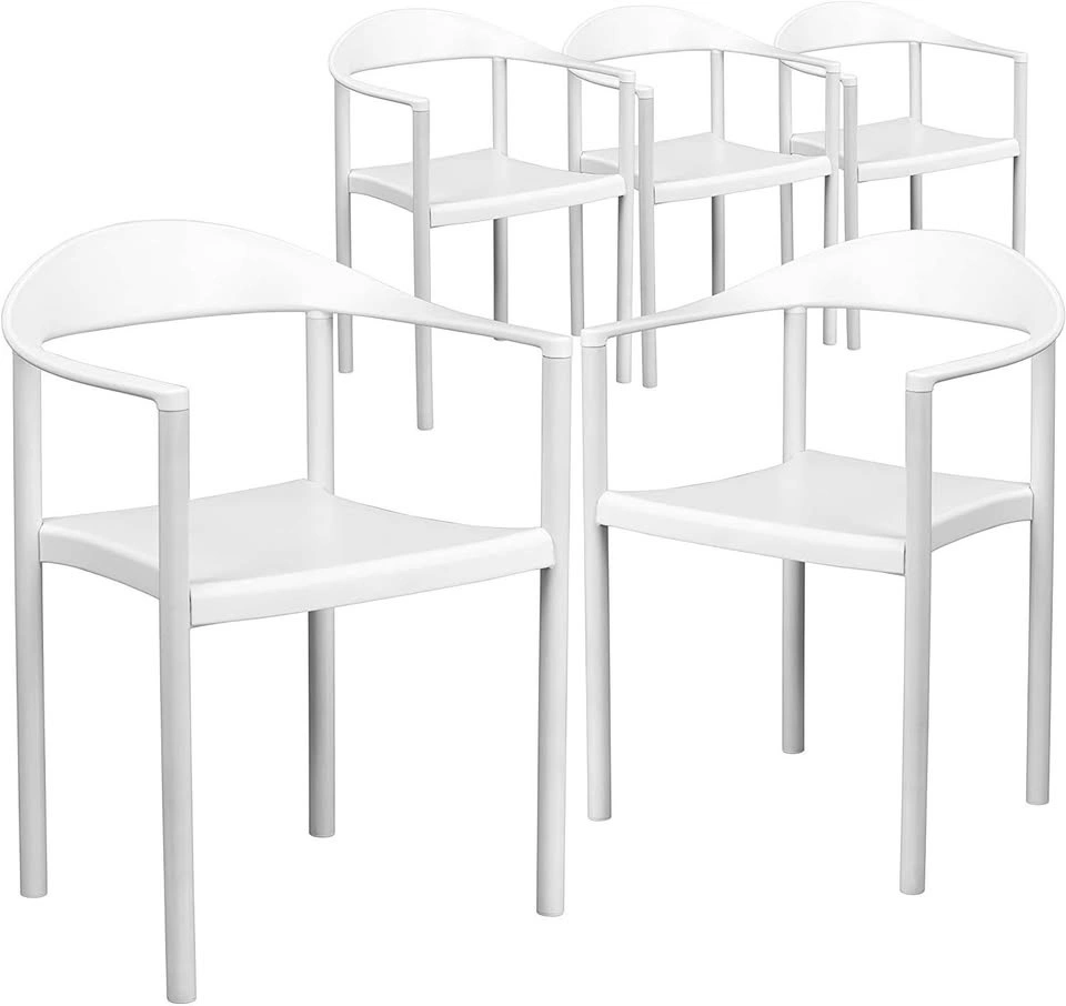 * Flash Furniture Hercules Plastic Café Stacking Chair in White. 5PK 1000 lb. Capacity Plastic Café Stack Chair - Curving Back, Seat & Arms. Perfect for residential or commercial use. Stack-able for space-saving storage. Price is $100 each.