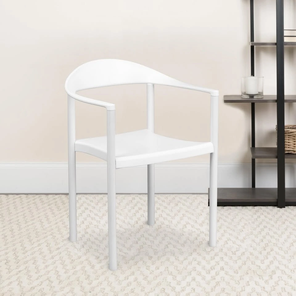 * Flash Furniture Hercules Plastic Café Stacking Chair in White. 5PK 1000 lb. Capacity Plastic Café Stack Chair - Curving Back, Seat & Arms. Perfect for residential or commercial use. Stack-able for space-saving storage. Price is $100 each.