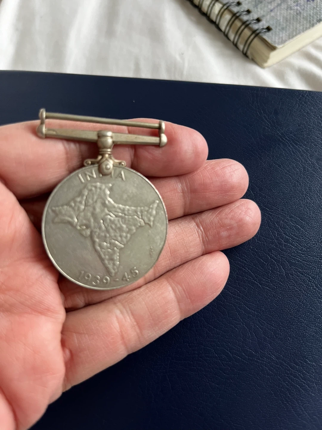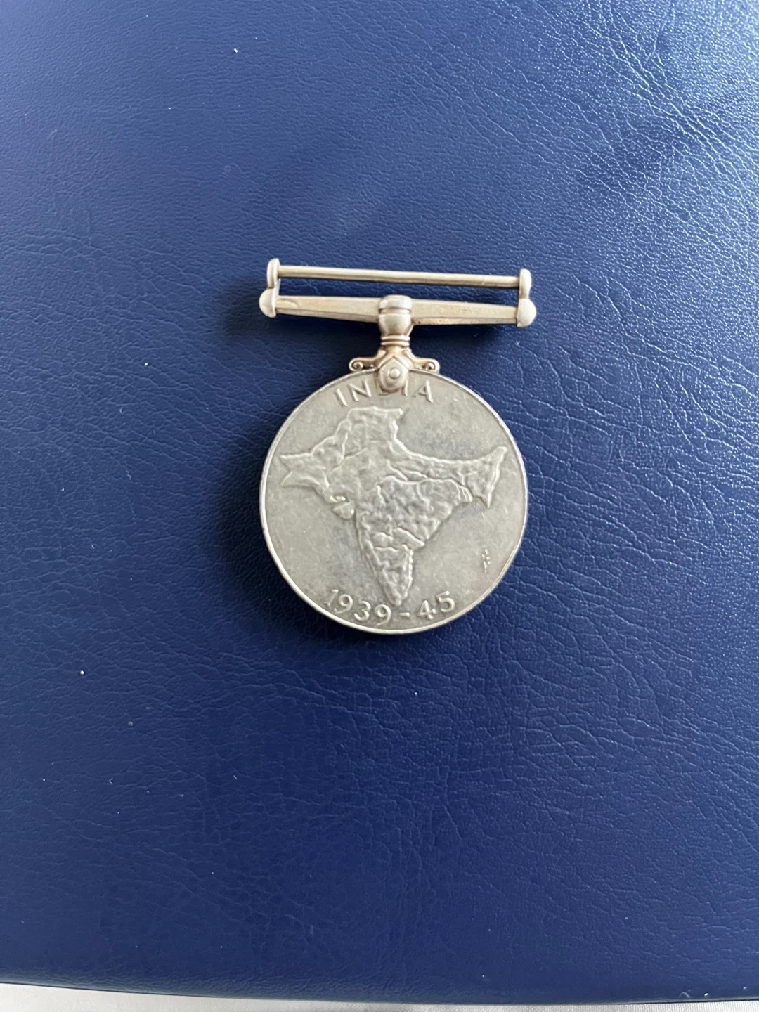 This medal is for service in India during 1939-1945. It features King George VI on the obverse and a map of India on the reverse. It's a historical collectible item from World War II. This medal would be of interest to military history enthusiasts and collectors.